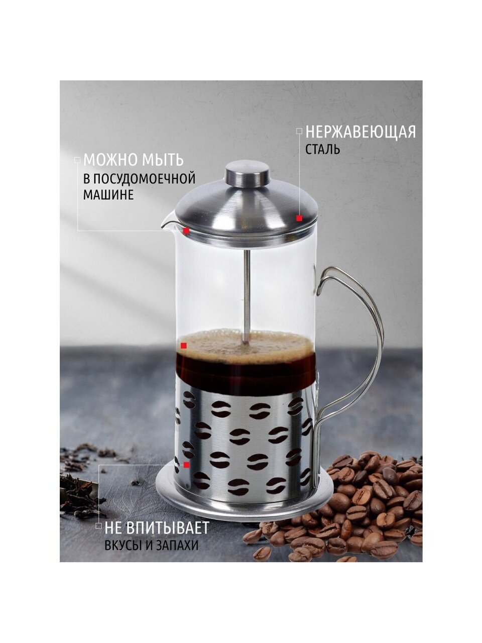 Френч-пресс Daniks - это практичный и незаменимый аксессуар для заваривания кофе или чая. С его помощью Вы с легкостью сумеете приготовить себе ароматный и весьма вкусный напиток, а при желании даже угостить им своих близких и друзей.