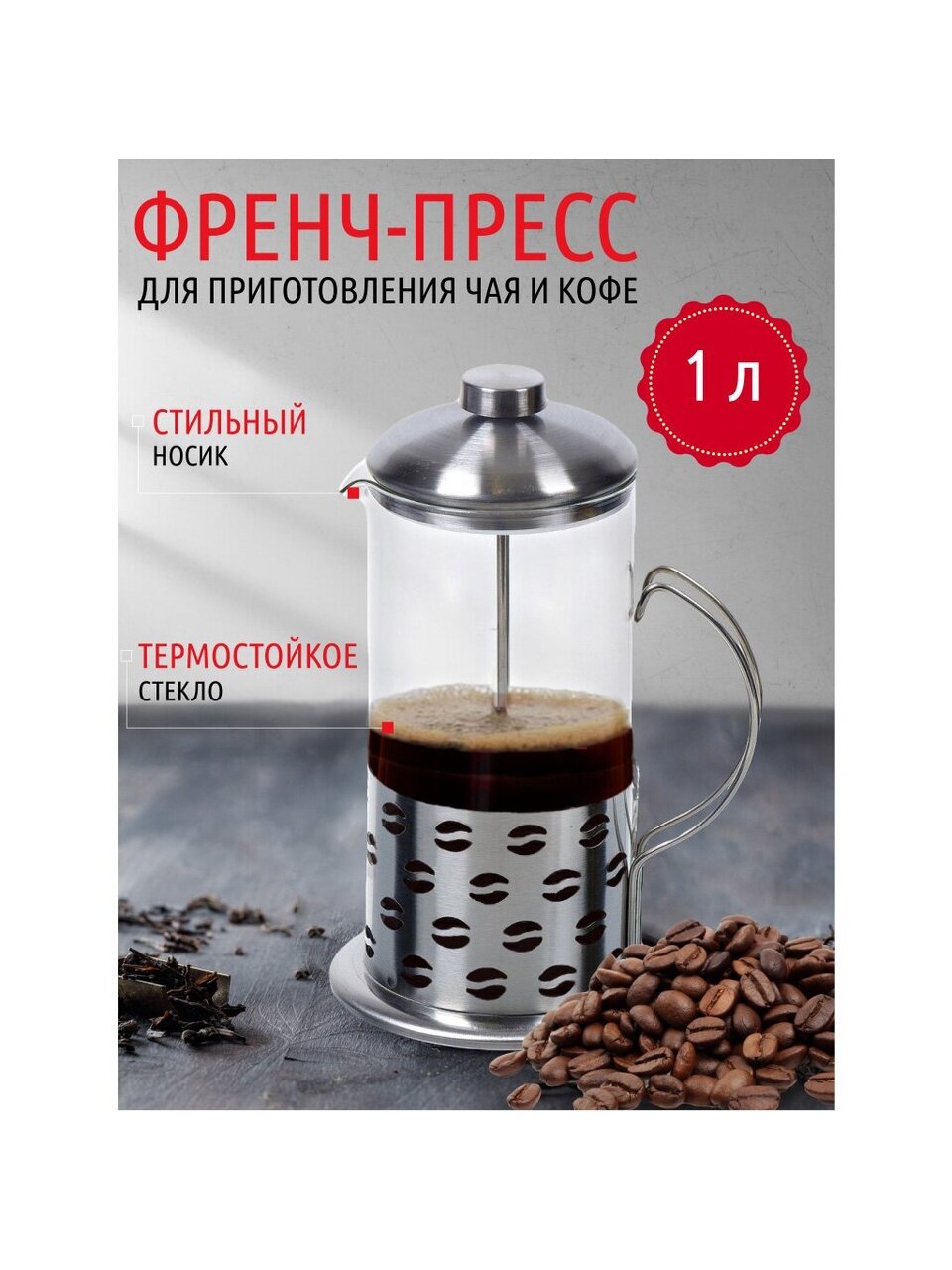 Вы можете приобрести «Френч-пресс 1 л, стекло, нержавеющая сталь, Daniks, Кофе» и другие товары в нашем интернет-магазине в Липецке по низким ценам и с бесплатным самовывозом.