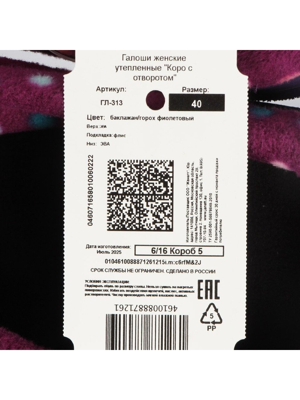 Вы можете приобрести «Галоши для женщин, ЭВА, баклажан/горох фиолетовые, р. 40, утепленные, Коро, ГЛ-313» и другие товары в нашем интернет-магазине в Брянске по низким ценам и с бесплатным самовывозом.