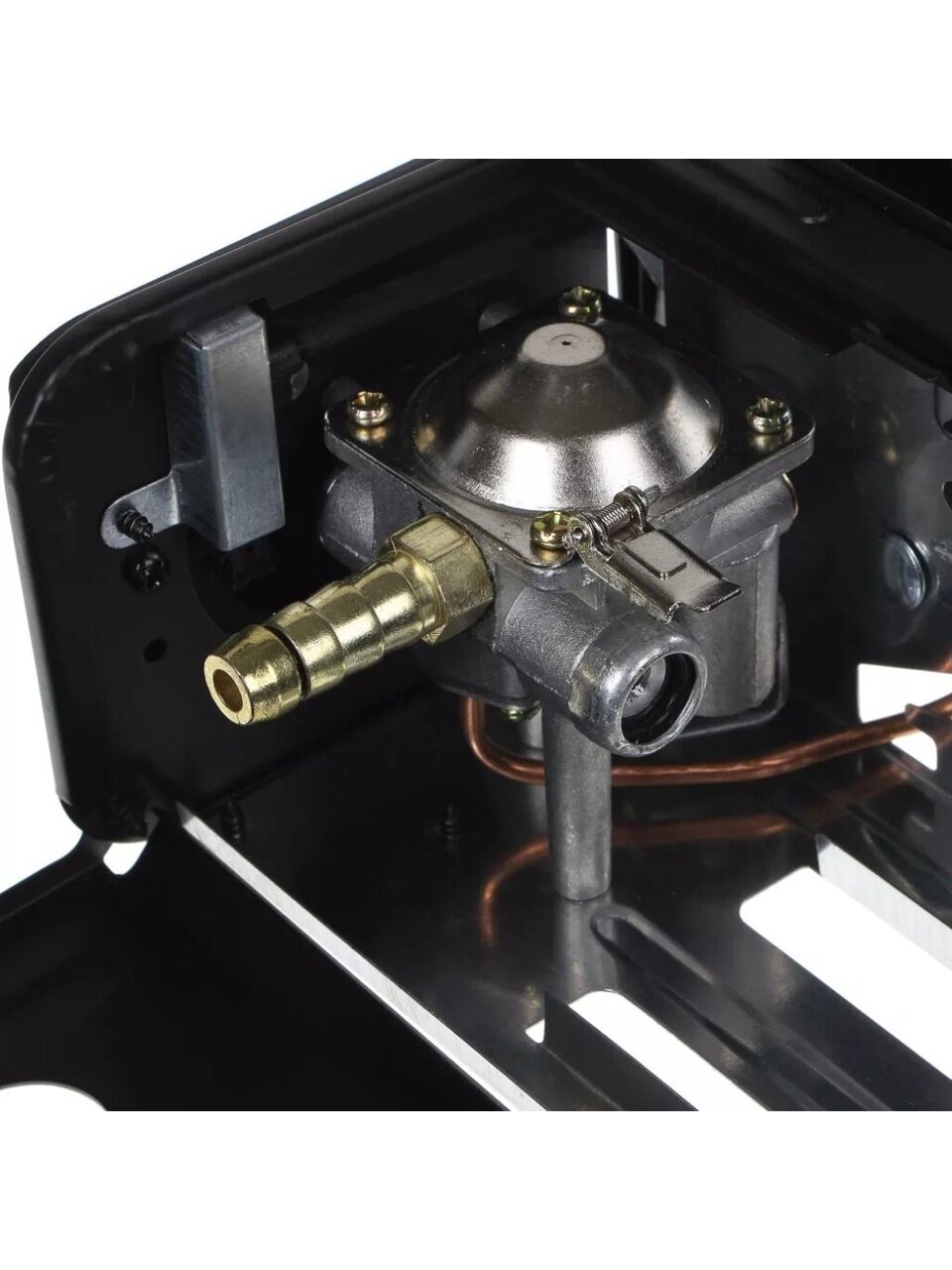 - Плита работает от цанговых баллонов. Есть возможность подключить к большим баллонам через редуктор-переходник (редуктор-переходник в комплектацию не входит).