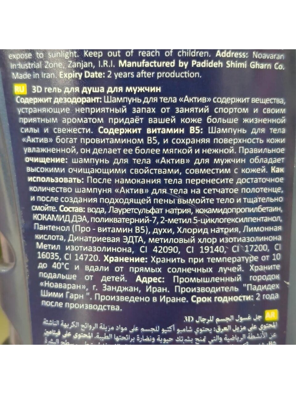 Мужской гель для душа Active Спорт 3D подходит для очищения и ежедневной гигиены тела. Витамин В5 интенсивно увлажняет, помогает сохранить влагу и устранить шелушения кожи.