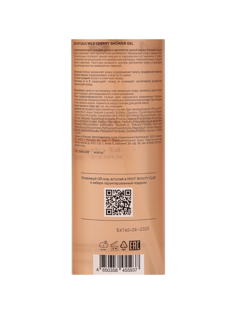 Парфюмированный гель для душа Mixit «Дикая вишня», 500 мл: заряд свежести и уход за кожей для женщин, которые ценят аромат и мягкость каждый день.