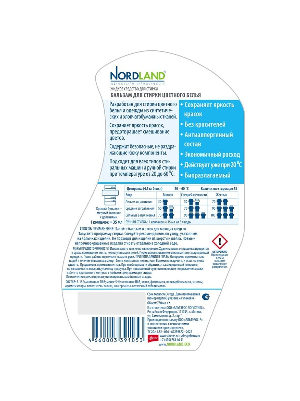 Бальзам для стирки Nordland - это эффективное и безопасное средство для стирки цветных вещей. Оно бережно очищает ткань, сохраняя яркость и насыщенность цветов.