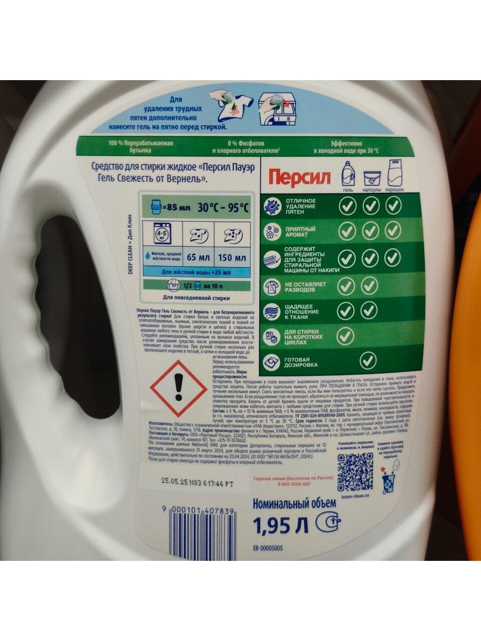 Жидкое средство для стирки Персил подарит вещам сияющую чистоту и свежесть. Гель содержит активную формулу Deep Clean Plus с 13 компонентами, которая обеспечивает непревзойденный результат стирки.