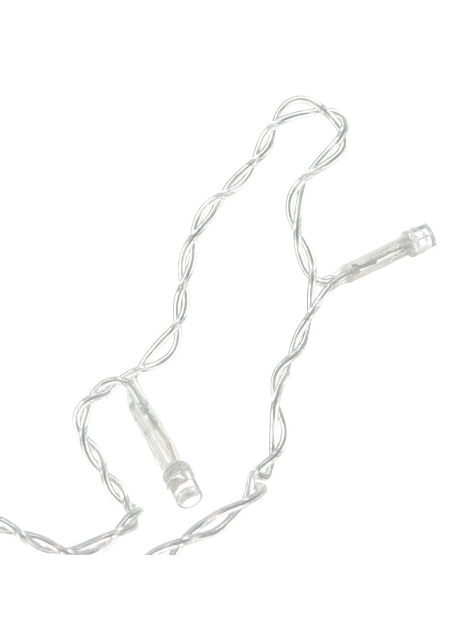 - Оптимальный размер 1,5×1,5 м, 120 диодов, прозрачный провод — гармонично вписывается в интерьер
