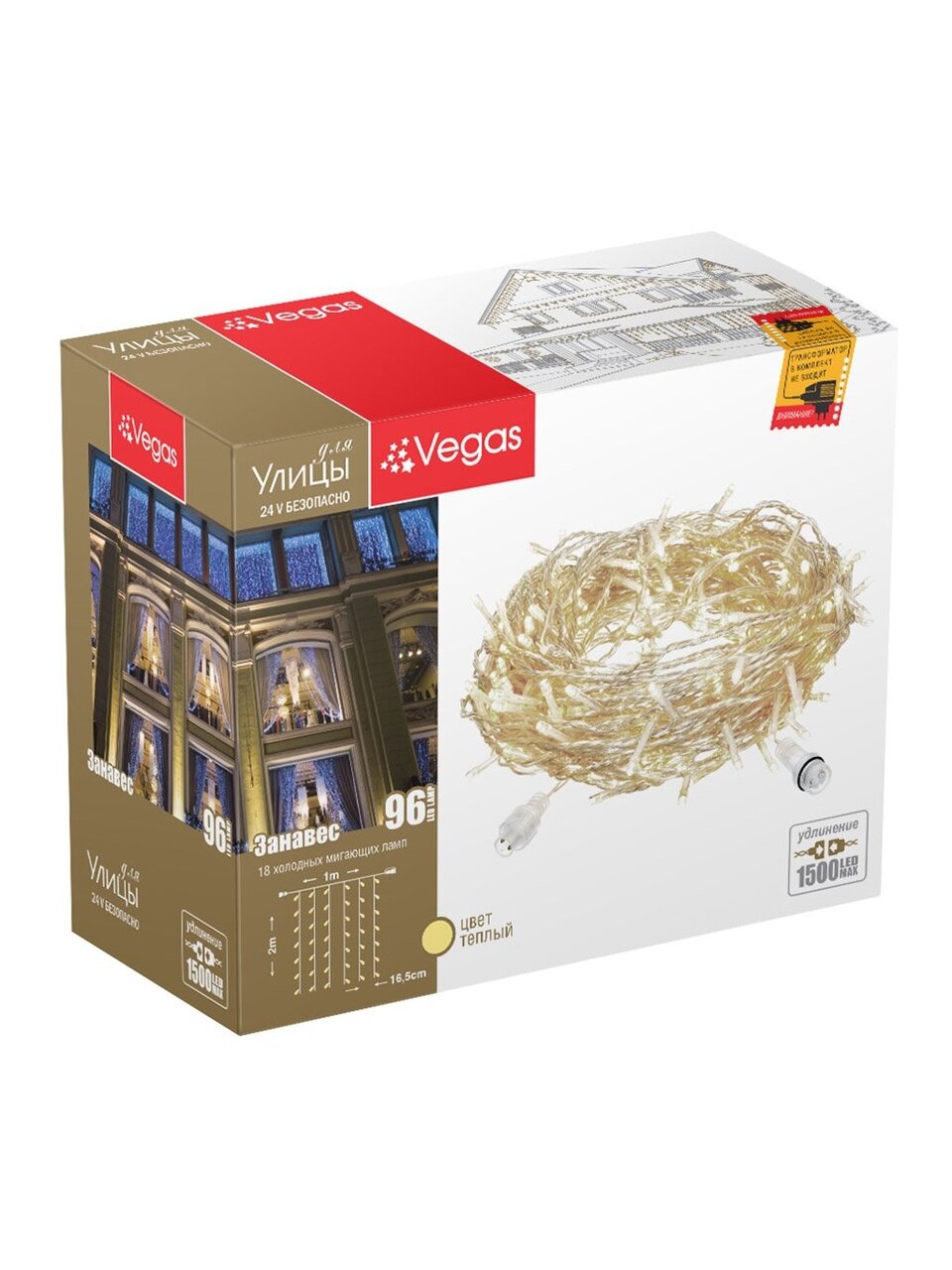 Вы можете приобрести «Гирлянда 96 ламп, 2х1 м, 1 режим, Занавес, Vegas, свет теплый, прозрачная, на улице/в помещении, сетевая, LED, мигание, 6 нитей, 55023» и другие товары в нашем интернет-магазине в Курске по низким ценам и с бесплатным самовывозом.