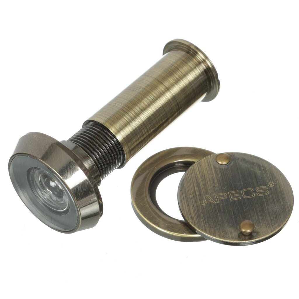 Глазок Apecs с шторкой и широким углом обзора для входных дверей повысит безопасность дома или квартиры. Большой угол обзора позволяет охватить взглядом большое пространство и без искажений видеть объекты, которые находятся как перед самой дверью, так и по бокам и внизу от нее. Шторка защищает линзу от пыли и позволяет владельцу увидеть происходящее за дверью, оставшись незамеченным.