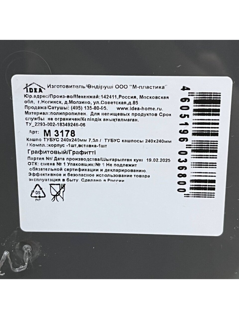 Вы можете приобрести «Кашпо пластик, 7.5 л, 24х24х35.5 см, универсальное, графит, Idea, Тубус, М 3178» и другие товары в нашем интернет-магазине в Серпухове по низким ценам и с бесплатным самовывозом.