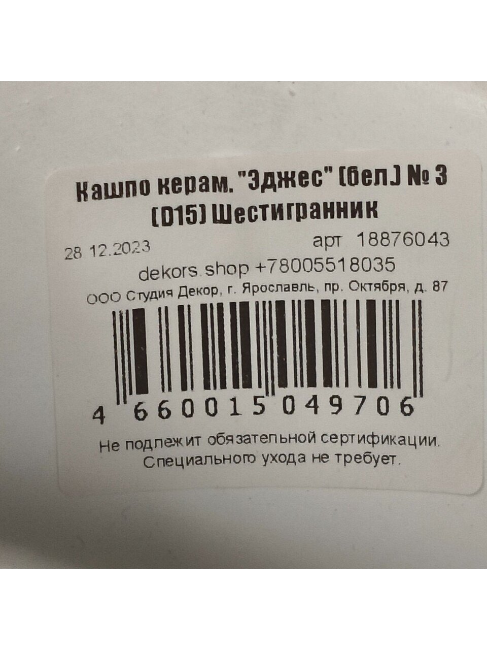 Вы можете приобрести «Кашпо керамика, 1.3 л, 15х11 см, шестигранник, белое, Эджес №3, 049706» и другие товары в нашем интернет-магазине в Иваново по низким ценам и с бесплатным самовывозом.