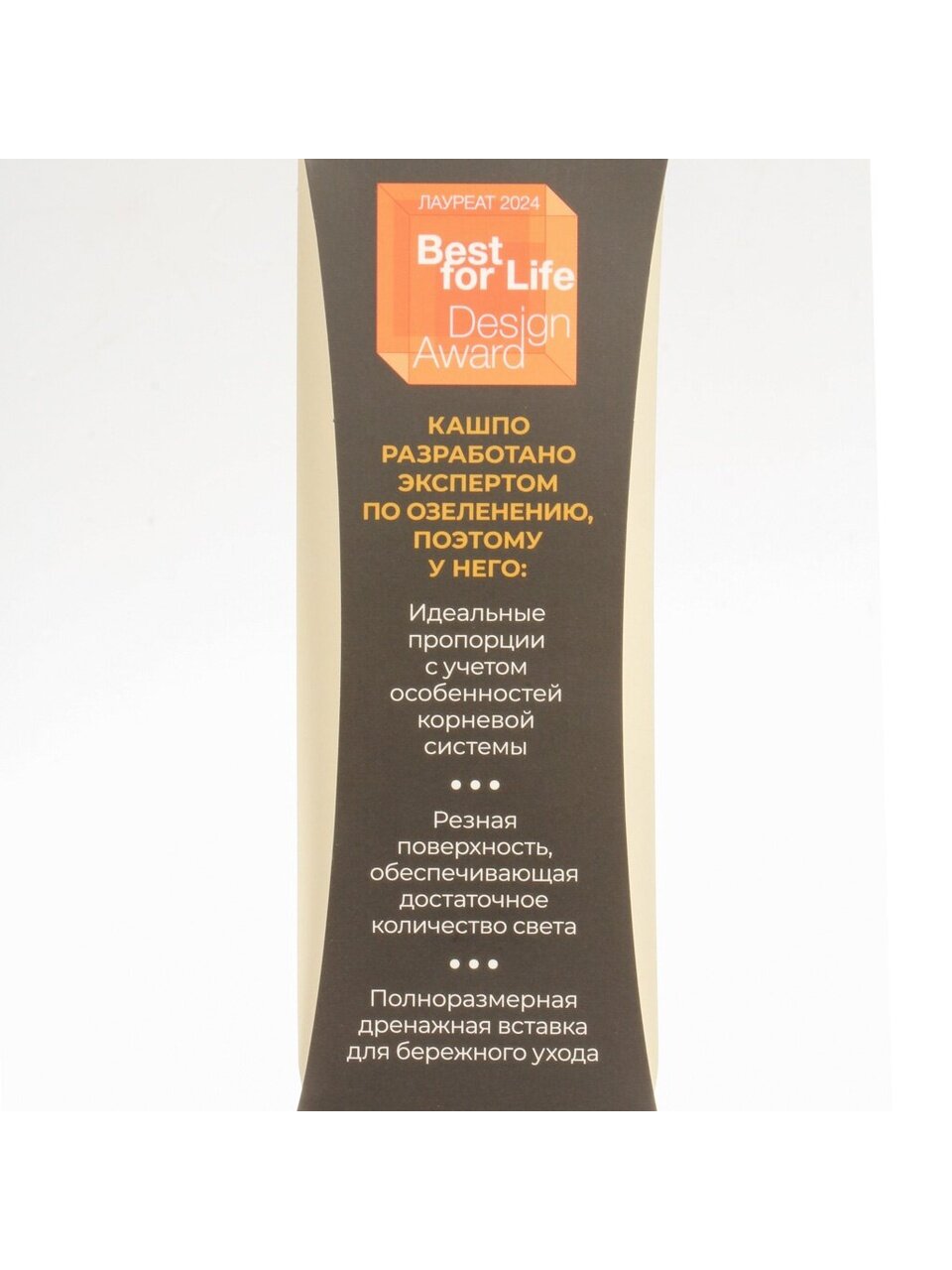 Изготовлено из прочного пластика, что обеспечивает легкость ухода, долговечность и устойчивость к повреждениям. Кашпо оснащено дренажным отверстием, способствующим правильному отведению лишней влаги и защите корней от загнивания, что особенно важно для поддержания здоровья растений. В комплекте предусмотрен вкладыш, который облегчает пересадку и уход за зелеными любимцами. Кашпо не предназначено для использования на улице, что делает его идеальным выбором для помещений любого типа.