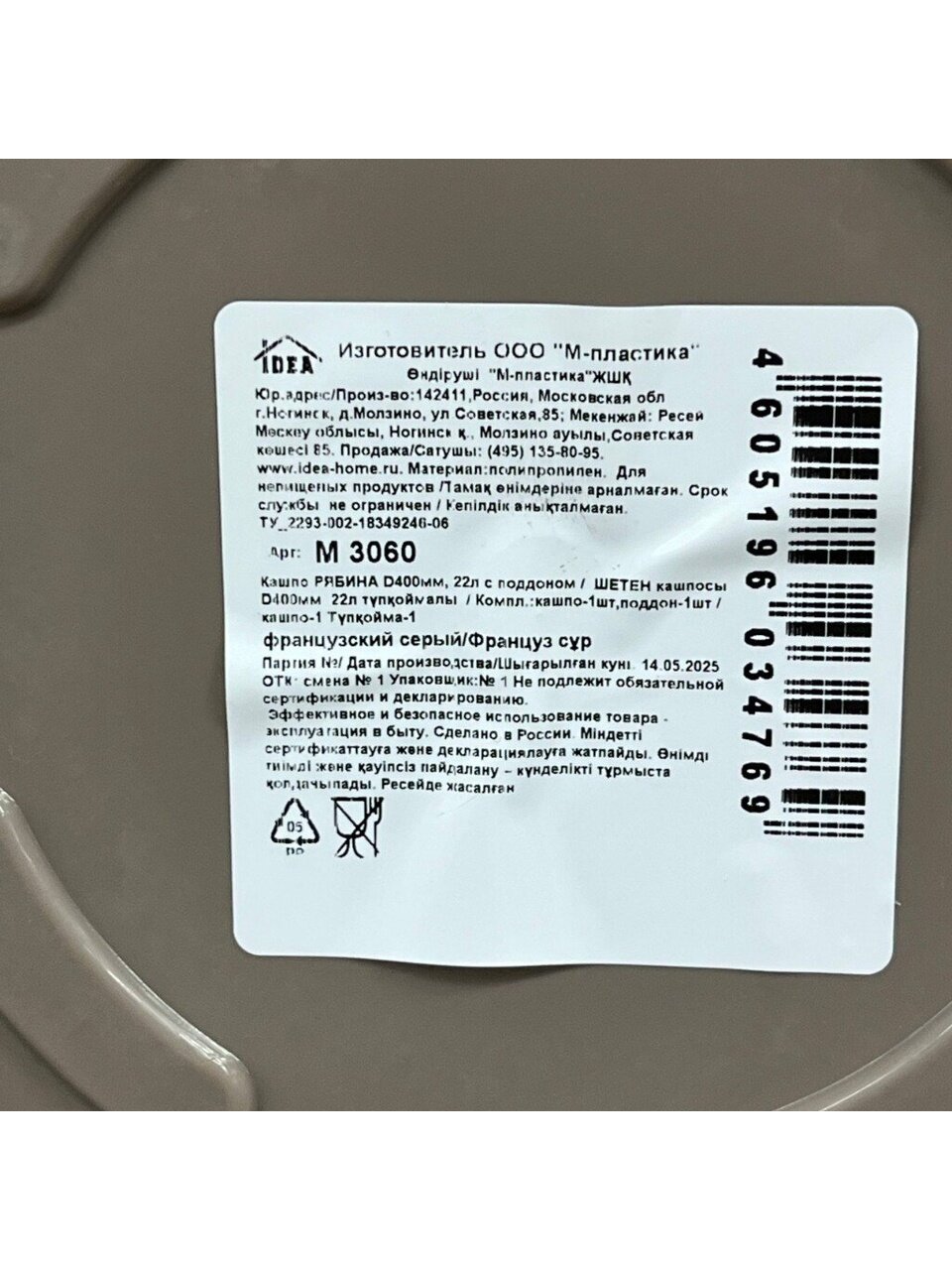 Вы можете приобрести «Горшок для цветов пластик, 22 л, 44х31.4 см, французский серый, Idea, Рябина, М 3060» и другие товары в нашем интернет-магазине в Россоши по низким ценам и с бесплатным самовывозом.