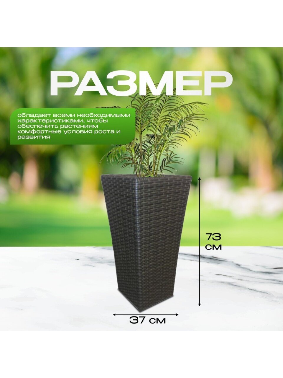 Размер 37х29х73 см. Большой объем позволяет использовать кашпо для высоких декоративных растений, пальм, фикусов, а также для цветочных композиций на даче или в офисе.