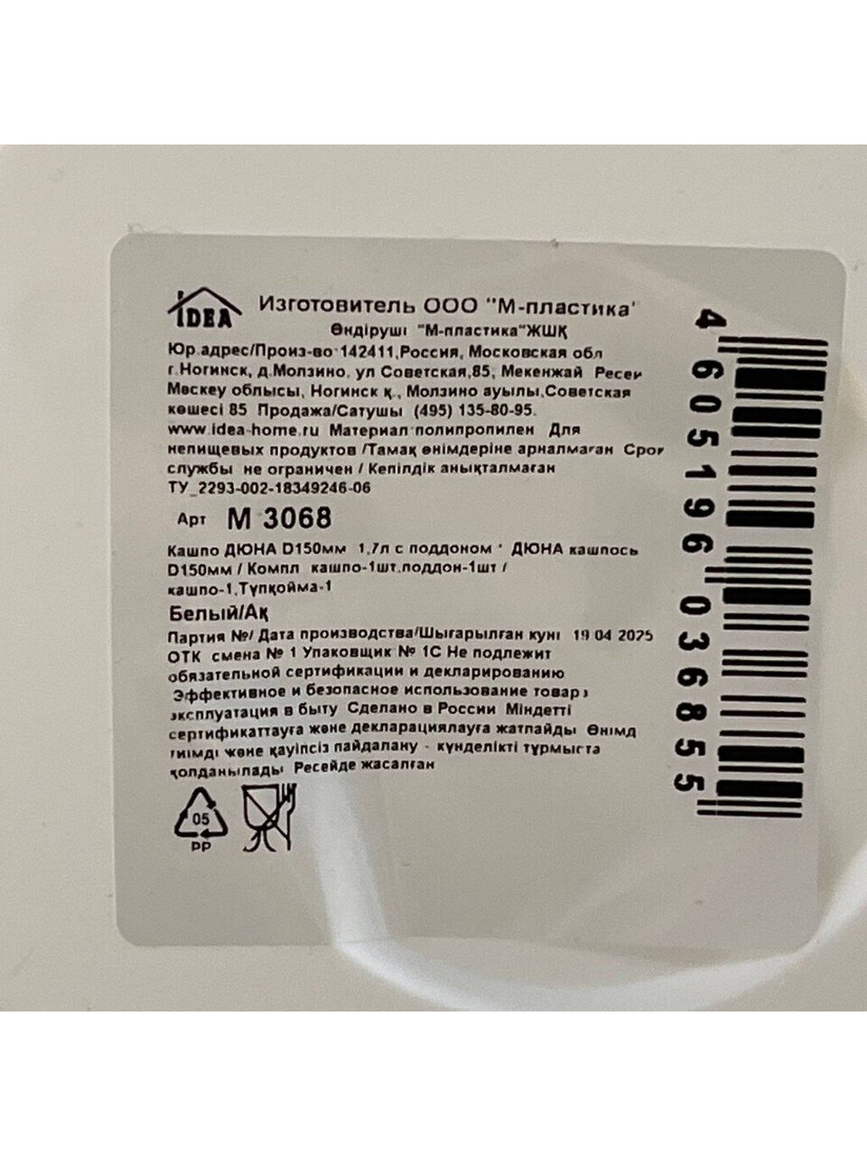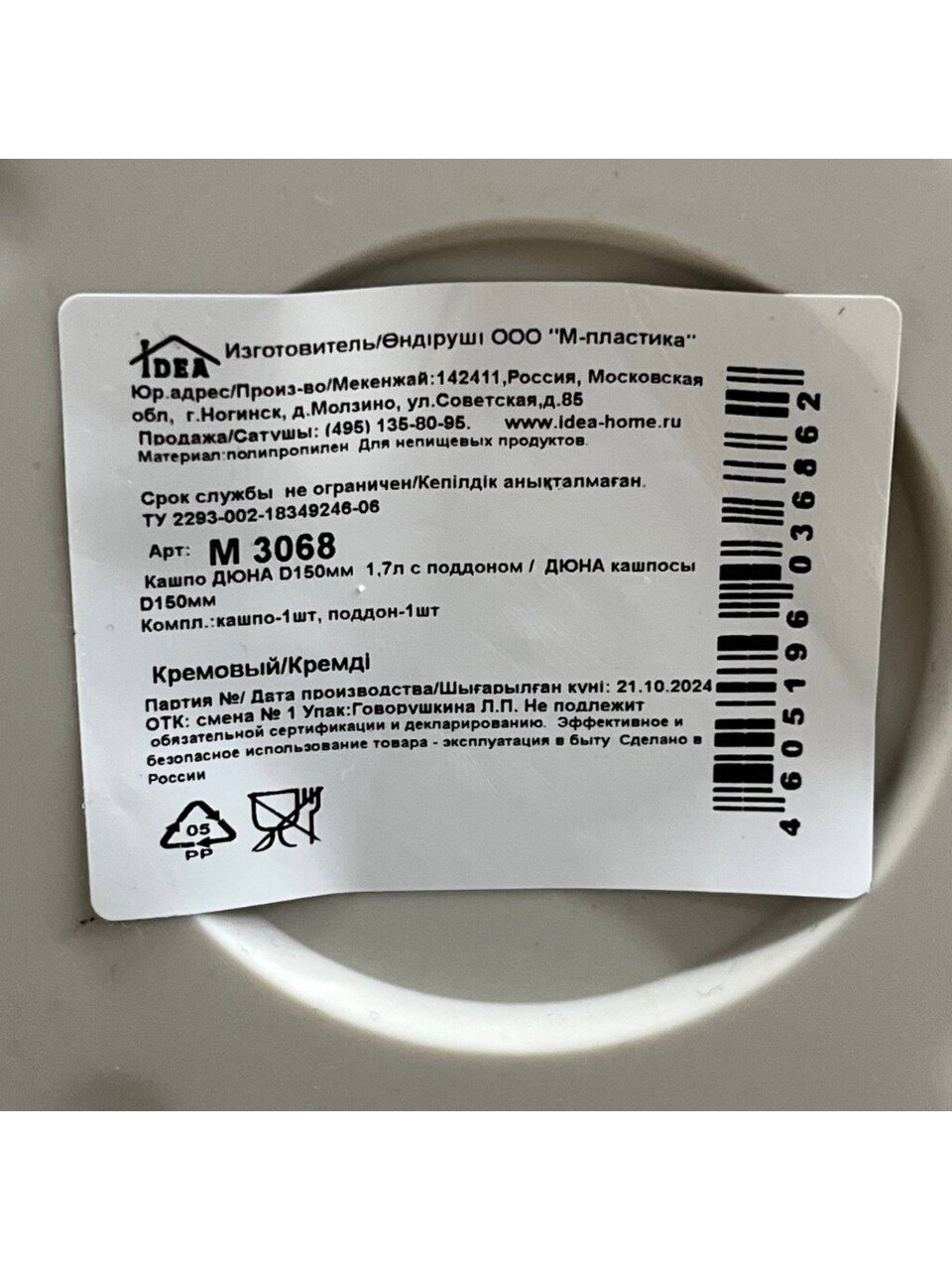 Горшок для цветов выполнен из прочного пластика. Пластиковые изделия не нуждаются в специальных условиях хранения. Их легко чистить, достаточно просто сполоснуть теплой водой. Пластиковые кашпо не царапают и не загрязняют поверхности, на которых стоят. Пластик дольше хранит влагу, а значит растение реже нуждается в поливе.