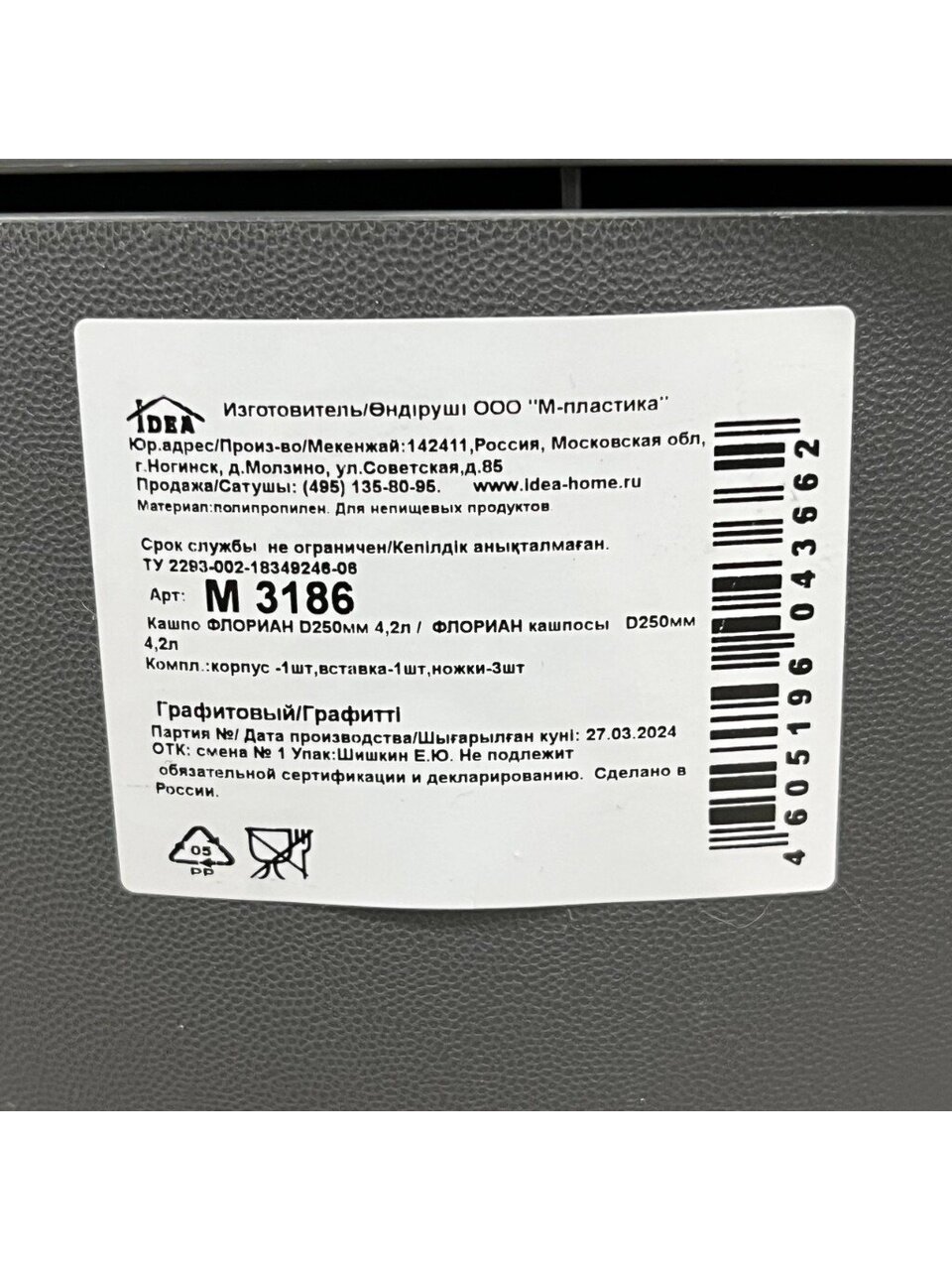 Вы можете приобрести «Кашпо пластик, 4.2 л, 25х18.5 см, графит, Idea, Флориан, М 3186» и другие товары в нашем интернет-магазине в Казани по низким ценам и с бесплатным самовывозом.