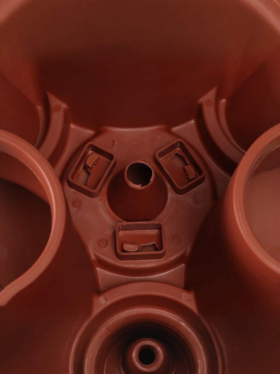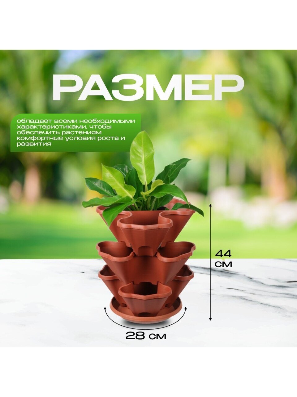 - Комплектация: с креплением для подвешивания в комплекте (трос пропускается через отверстия каждого яруса кашпо и фиксируется по нижней части при помощи креплений).