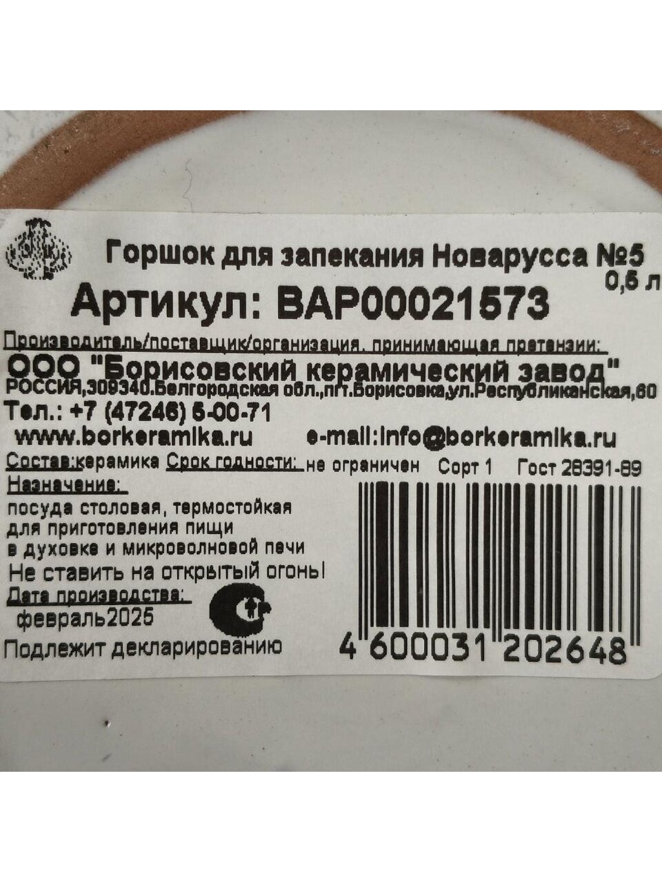 Вы можете приобрести «Горшок для жаркого керамика, 0.5 л, Борисовская керамика, Новарусса №5, Варадеро, ВАР00021573» и другие товары в нашем интернет-магазине в Смоленске по низким ценам и с бесплатным самовывозом.