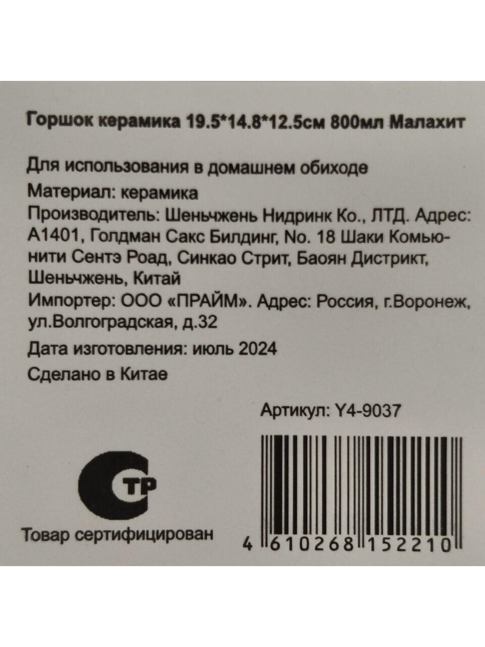 Вы можете приобрести «Горшок керамика, 0.8 л, Малахит, Y4-9037» и другие товары в нашем интернет-магазине в Смоленске по низким ценам и с бесплатным самовывозом.