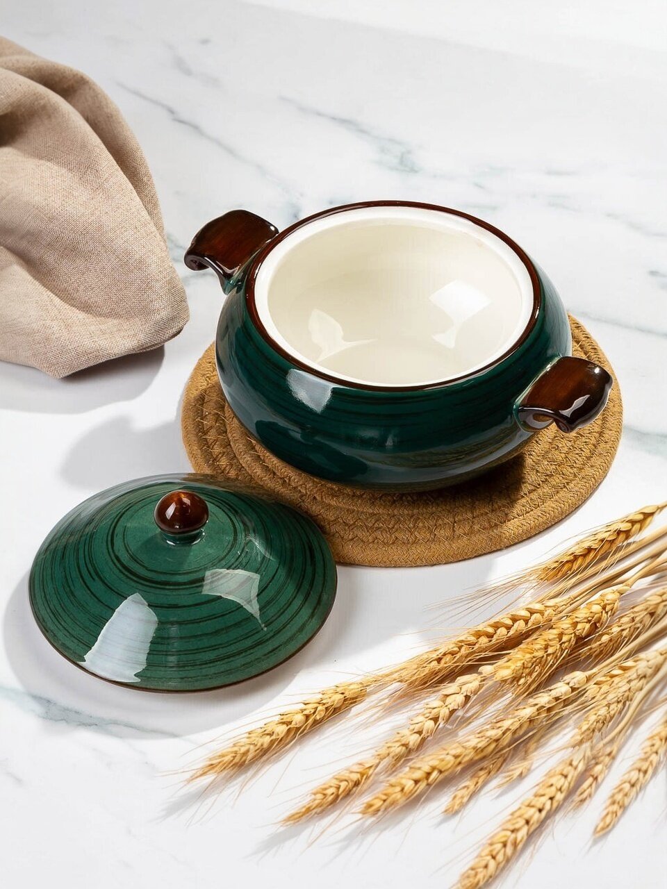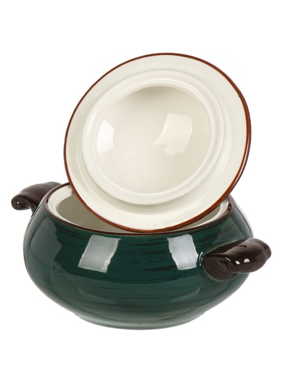 Элегантный зеленый цвет "Малахит" добавляет нотку свежести и природной гармонии в интерьер, а компактные размеры (длина 19.5 см, ширина 14.8 см, высота 12.5 см) делают его удобным для использования в любых условиях. Горшок оснащен крышкой, которая сохраняет тепло и аромат ваших блюд, что особенно важно для тех, кто ценит насыщенные вкусы и ароматы.