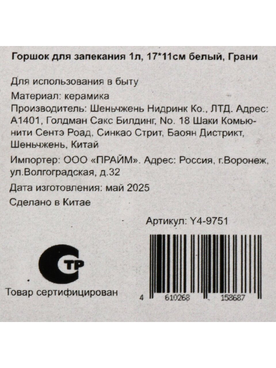 Вы можете приобрести «Горшок для запекания керамика, 1 л, 17х11 см, белый, Грани, Y4-9751» и другие товары в нашем интернет-магазине в Ярославле по низким ценам и с бесплатным самовывозом.