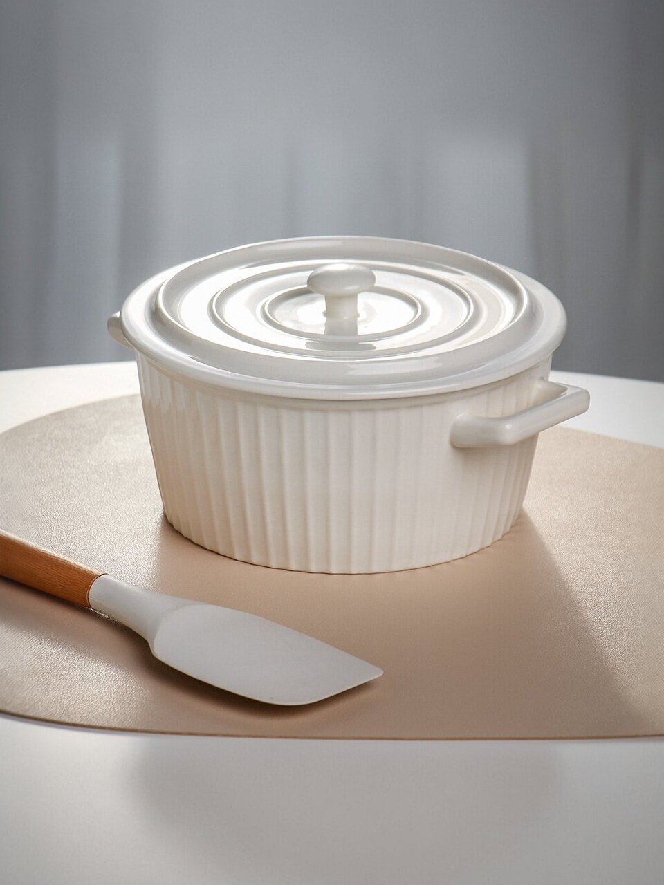 Горшок для запекания 1 л, керамика, белый: идеальное решение для здорового питания дома и на даче. Безопасность, стиль, универсальность – по выгодной цене.