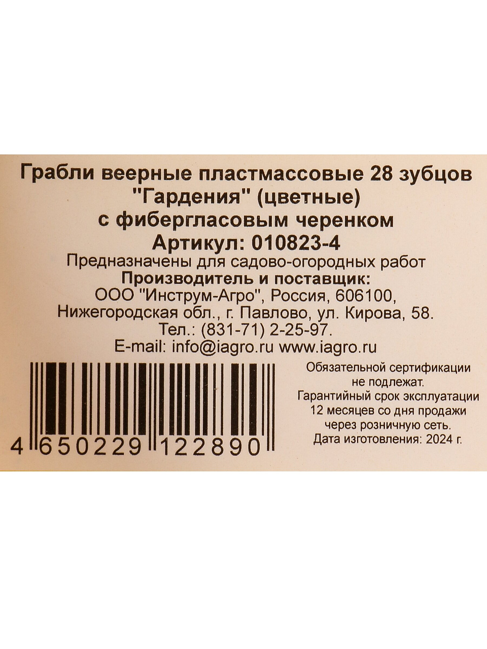 Грабли веерные, 28 зуб, пластик, 73 см, Инструм-Агро, Гардения, желтые, черенок фибергласс, 010823-4
