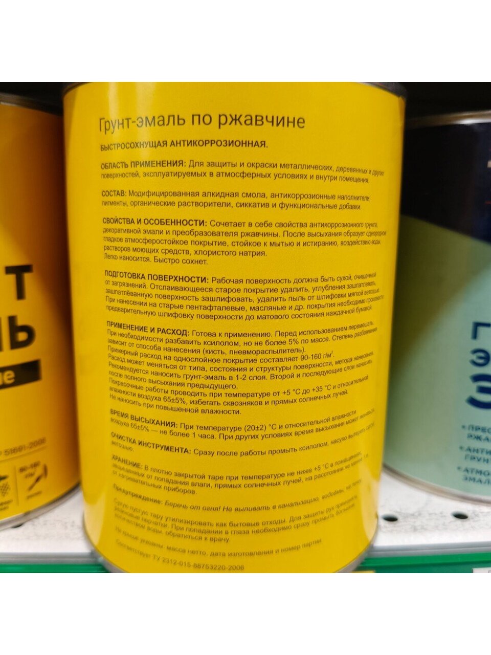 Свойства и особенности: сочетает в себе свойства антикоррозионного грунта, декоративной эмали и преобразователи ржавчины. После высыхания образует однородное, гладкое, атмосферостойкое покрытие, стойкое к мытью и истиранию, воздействию воды, растворов моющих средств, хлористого натрия. Легко наносится. Быстро сохнет.