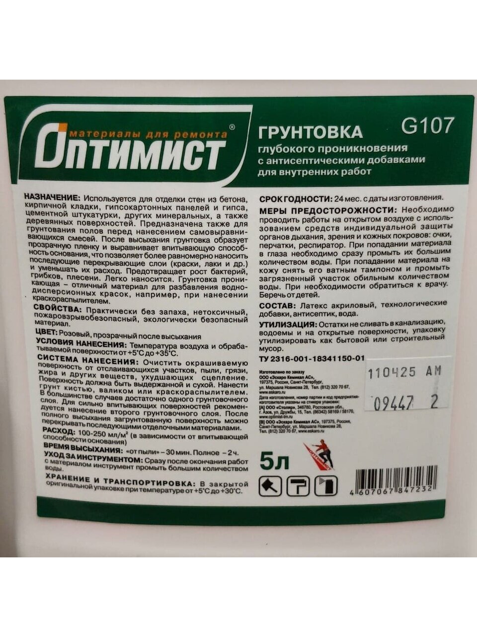 Вы можете приобрести «Грунтовка водно-дисперсионная, акриловая, Оптимист, G107, глубокого проникновения, для внутренних работ, 5 л, салатная этикетка» и другие товары в нашем интернет-магазине в Санкт-Петербургe по низким ценам и с бесплатным самовывозом.