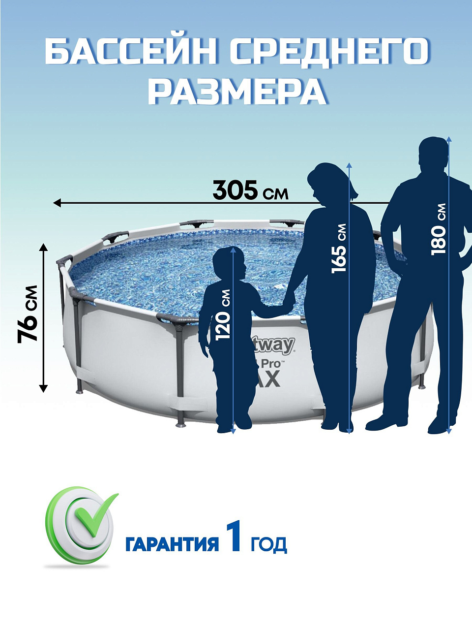 Вы можете приобрести «Бассейн каркасный Bestway, 305х76 см, Steel Pro Max, 56408, фильтр-насос, 4678 л» и другие товары в нашем интернет-магазине в Клинцах по низким ценам и с бесплатным самовывозом.