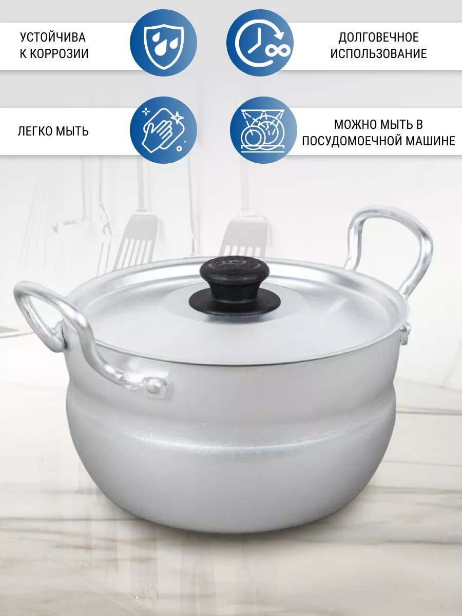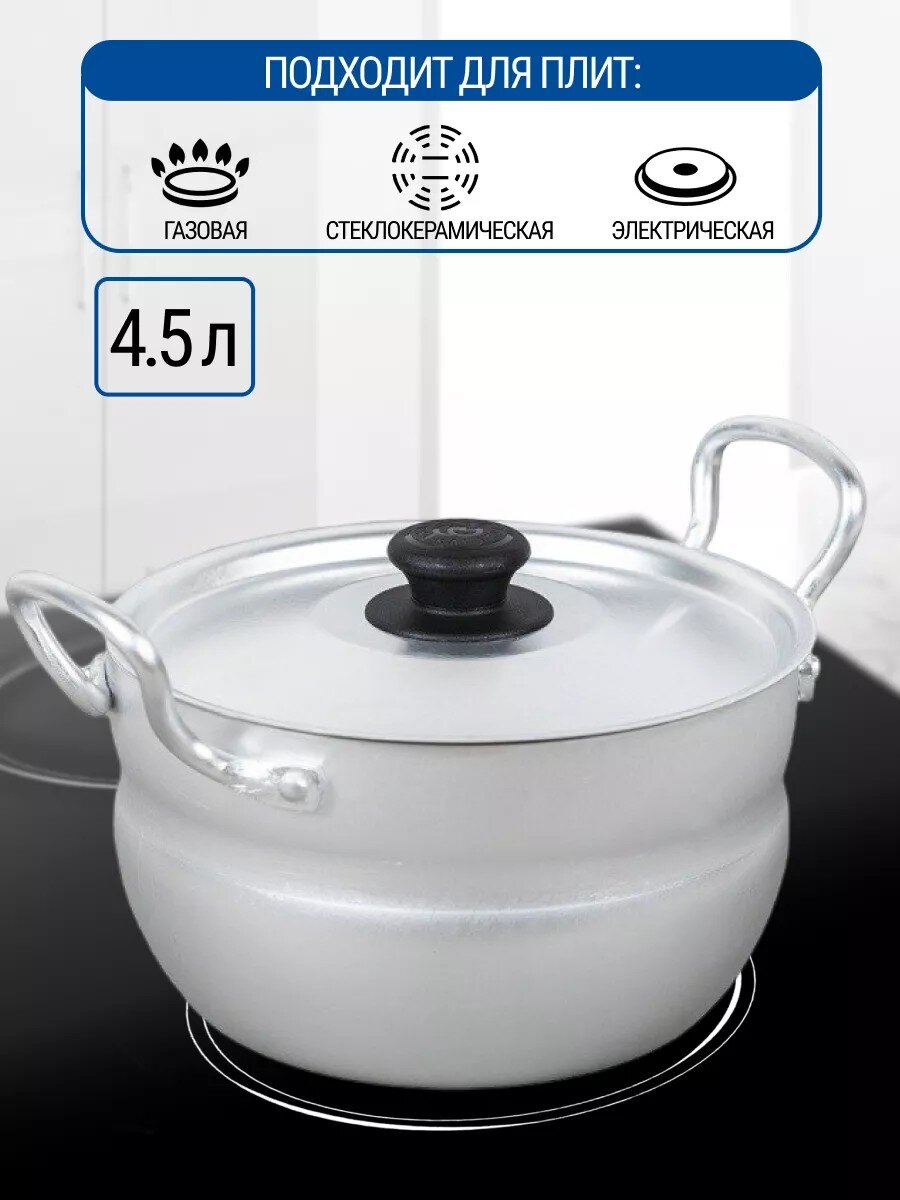 Закажите алюминиевую кастрюлю Калитва 4.5 л по выгодной цене — это надежный выбор для дома, дачи и подарка. Быстрая доставка, гарантия производителя 24 месяца, проверенное качество от российского бренда.