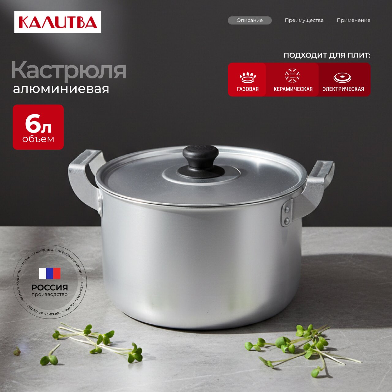 Закажите алюминиевую кастрюлю Калитва 6 л по выгодной цене — это выбор, проверенный временем. Гарантия 24 месяца, быстрая доставка и консультации эксперта по подбору объёма и типа плиты. Оформите заказ сейчас и получите надежную посуду для дома и дачи.
