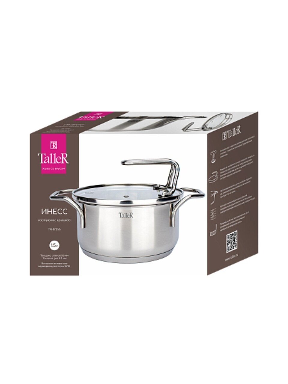 Кастрюля Taller Инесс 1.5 л из нержавеющей стали 18/10 с капсульным дном: долговечность, премиум-качество и универсальность для любых плит.