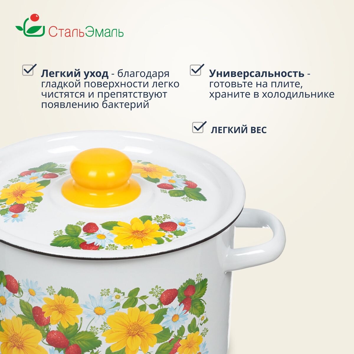 Эмалированная кастрюля СтальЭмаль 4.5 л для индукции — универсальное решение для кухни и дачи: надёжность, совместимость с любыми плитами, выгодная цена.