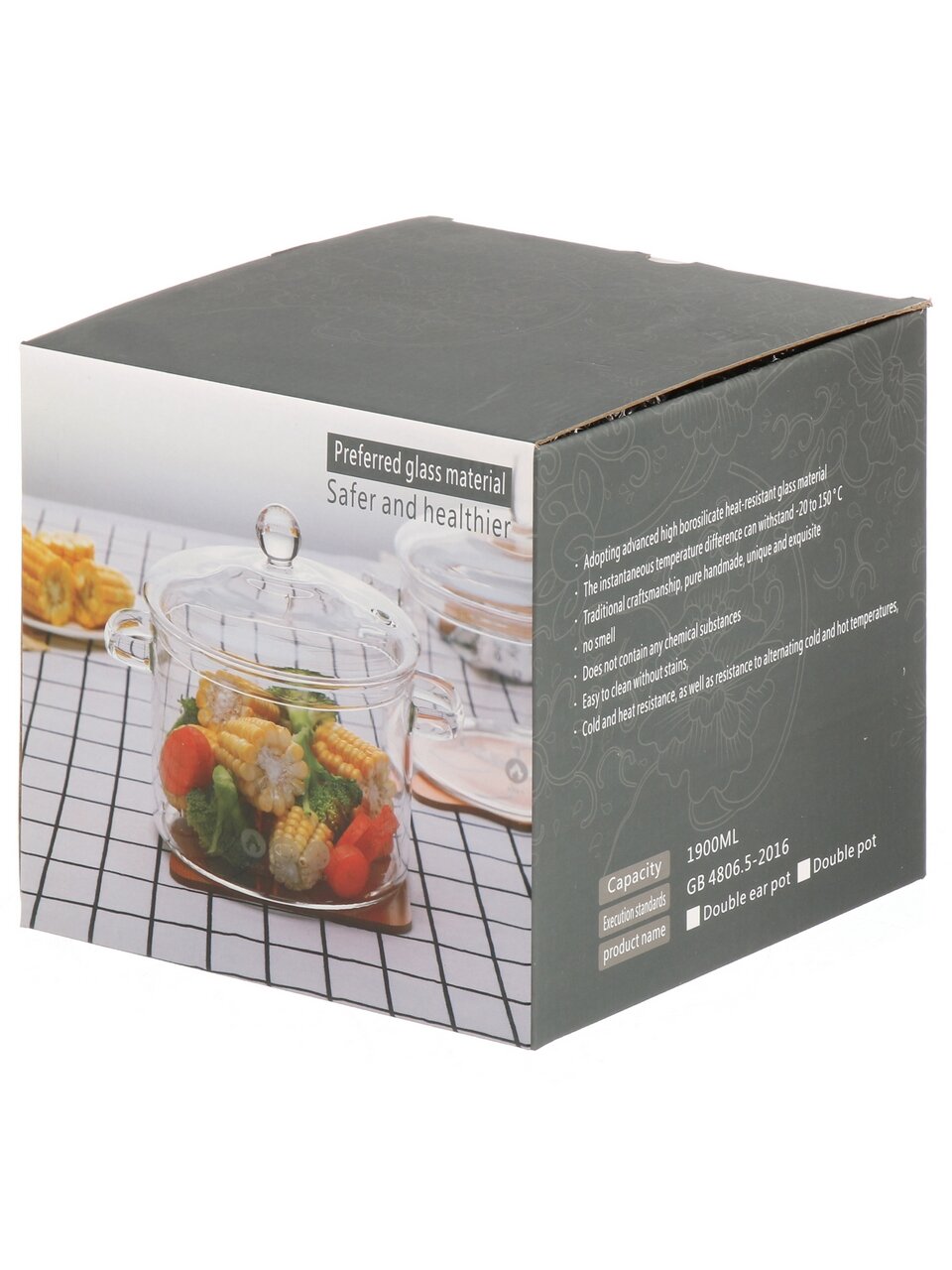 Кастрюля стекло, для СВЧ, духовок и электрических плит, 1.9л, графит, B150075