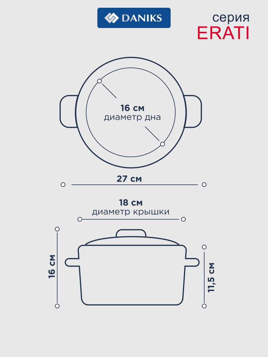 Какой диаметр и объем у кастрюли Daniks Ирати SD-01369-16?