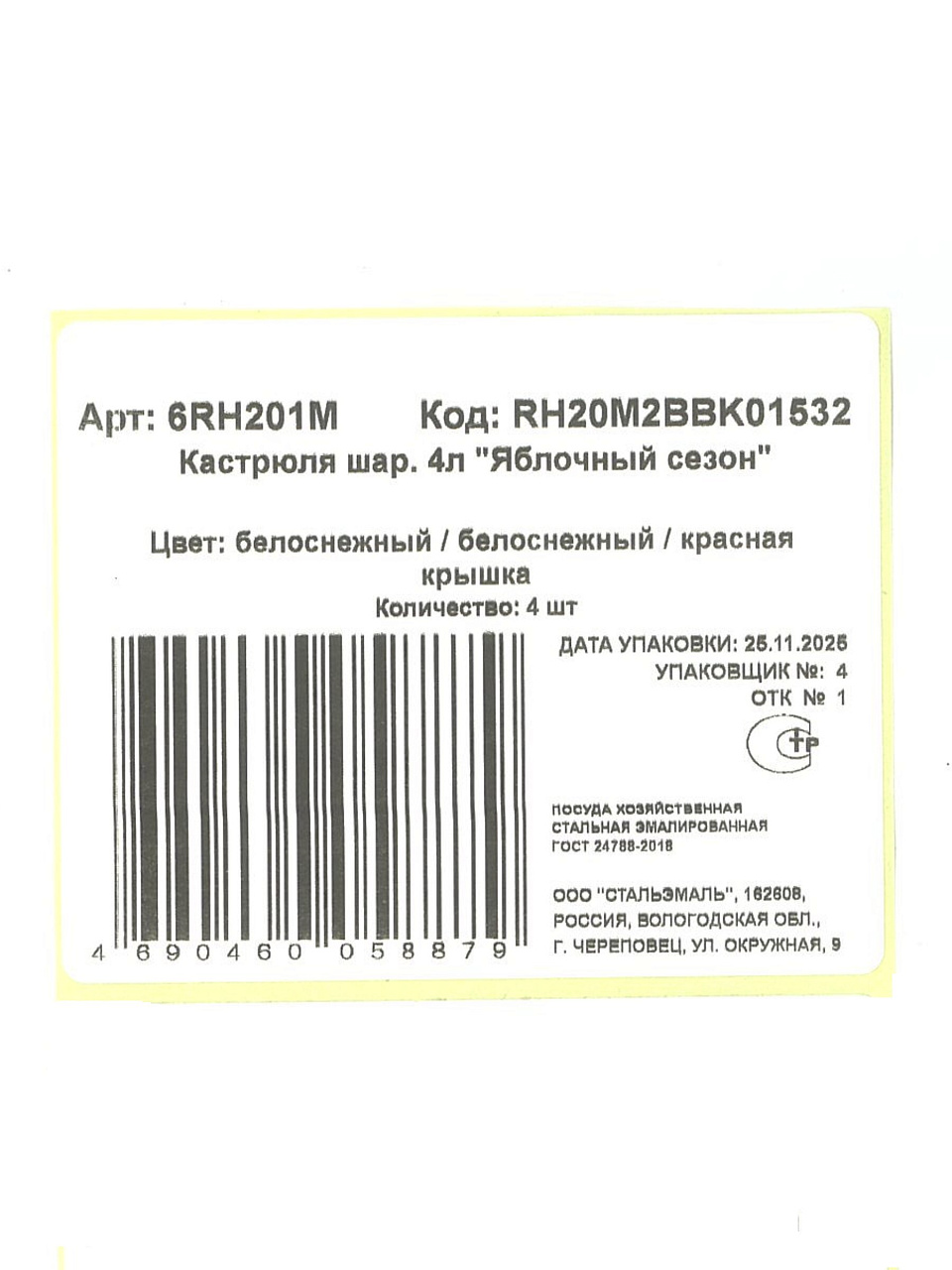 Вы можете приобрести «Кастрюля эмалированная сталь, 4 л, крышка сталь, кнопка, шаровидная, СтальЭмаль, Яблочный сезон, 6RH201M, индукция» и другие товары в нашем интернет-магазине в Краснодаре по низким ценам и с бесплатным самовывозом.
