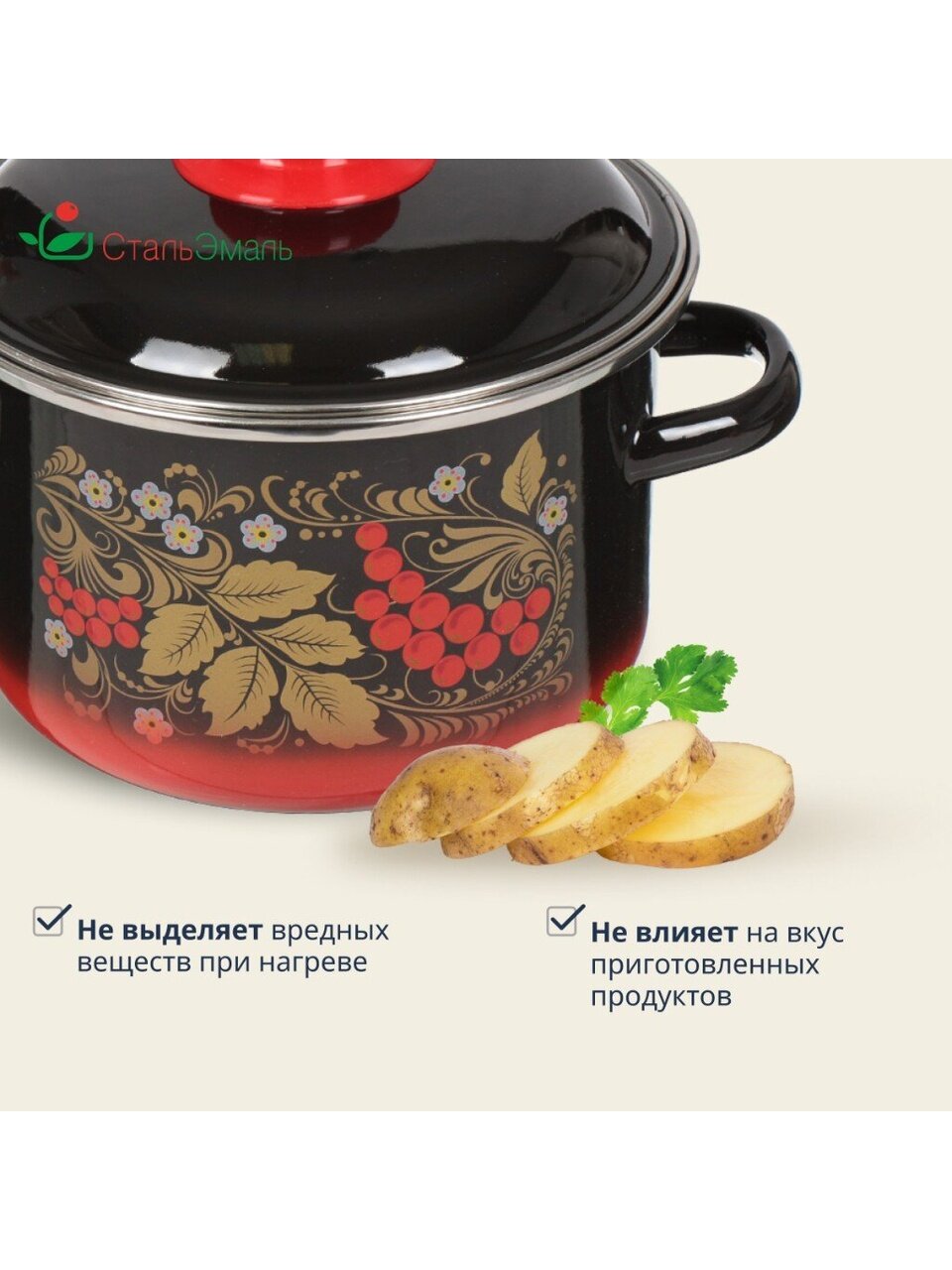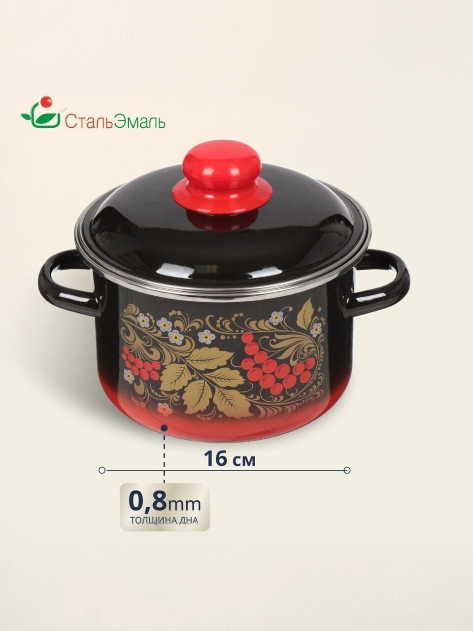 Кастрюля эмалированная СтальЭмаль Рябина 2 л — универсальное решение для кухни и дачи: подходит для индукционных плит, безопасна, легко моется, стильный дизайн.