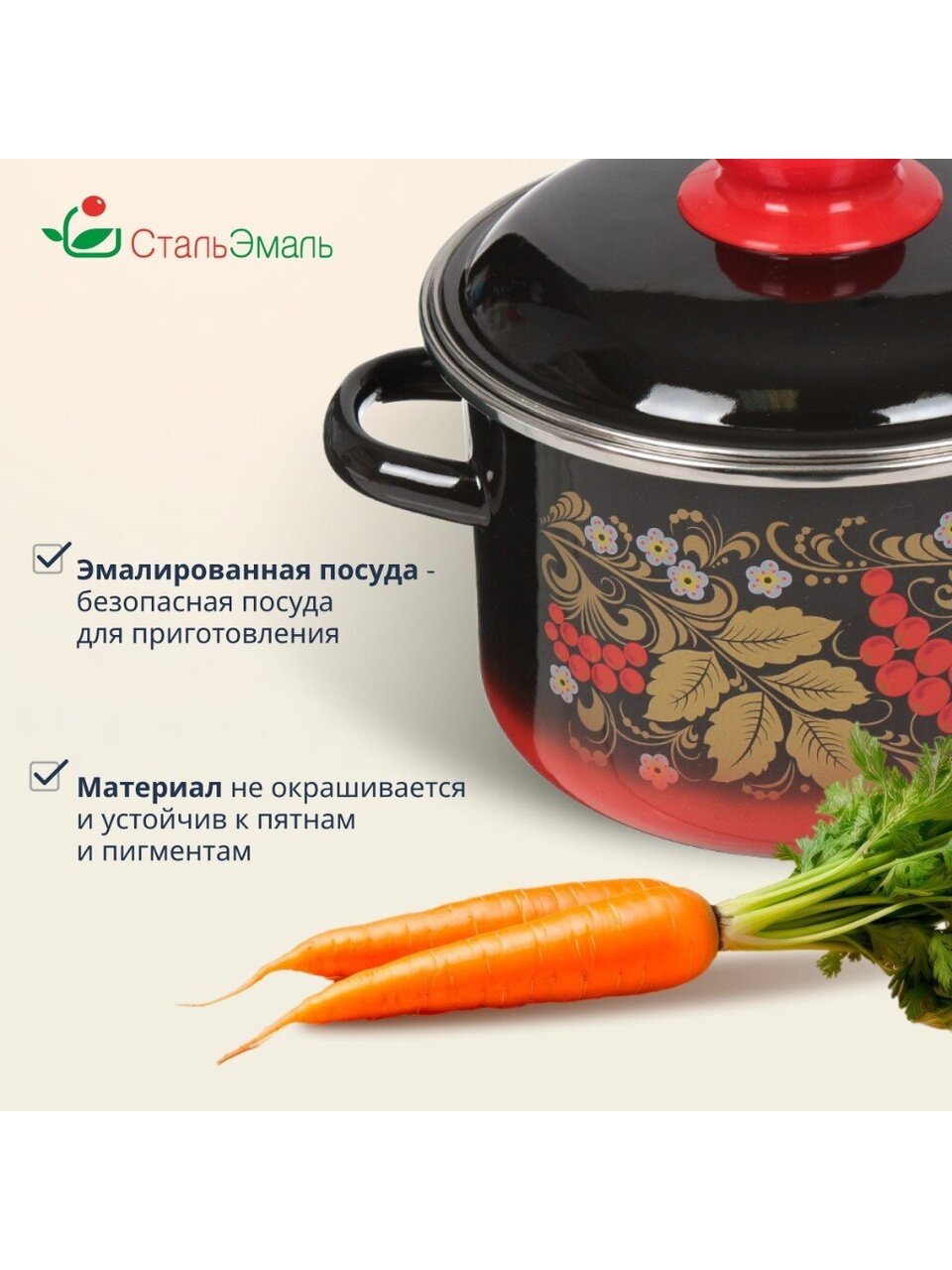 Выбирайте кастрюлю эмалированную СтальЭмаль Рябина 2 л для кухни, дачи или в подарок — оформите заказ сейчас и получите гарантию производителя 24 месяца. Удобная доставка и выгодная цена на оригинальный товар.