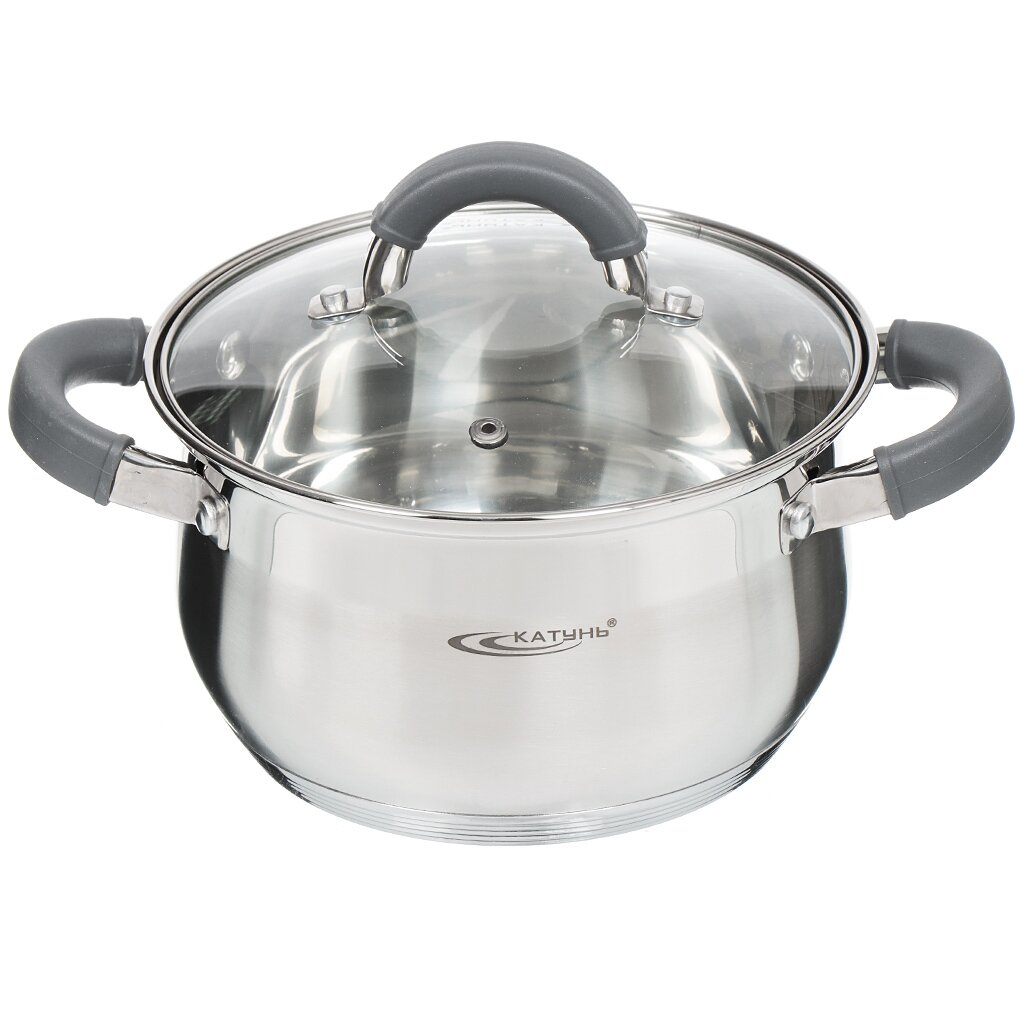 Кастрюля из нержавеющей стали 2.9 л Катунь Ирида: практичное решение для дома и дачи, подходит для индукции, стеклянная крышка, выгодная цена.