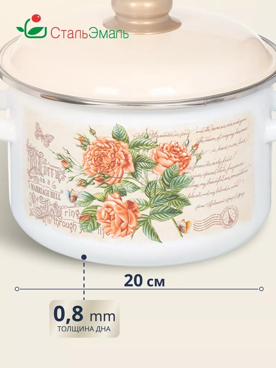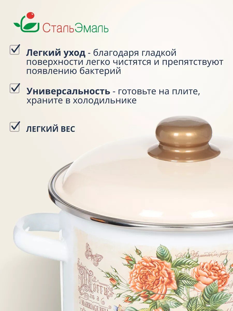 Эмалированная кастрюля 4 л СтальЭмаль Мэри: универсальное решение для индукционных плит, долговечность, стильный белый дизайн, выгодная цена.