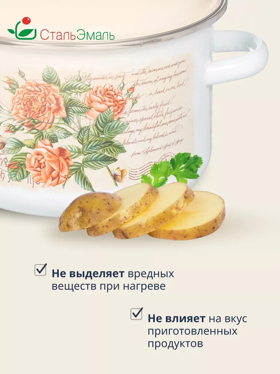 Эмалированная сталь не впитывает запахи, устойчива к царапинам, не вступает в реакцию с продуктами и легко очищается. Это идеальный выбор для приготовления супов, каш, макарон и пельменей без риска изменения вкуса.
