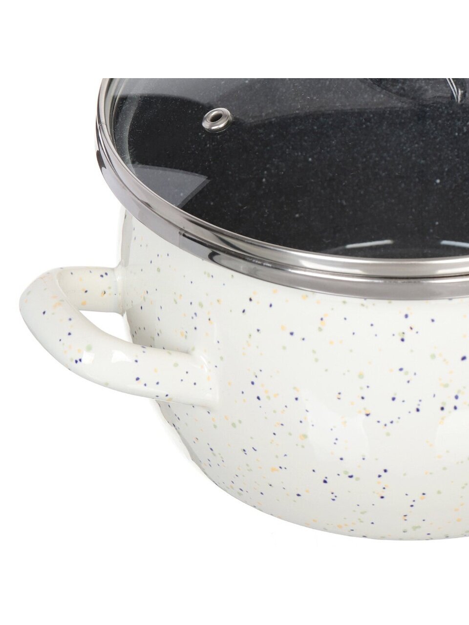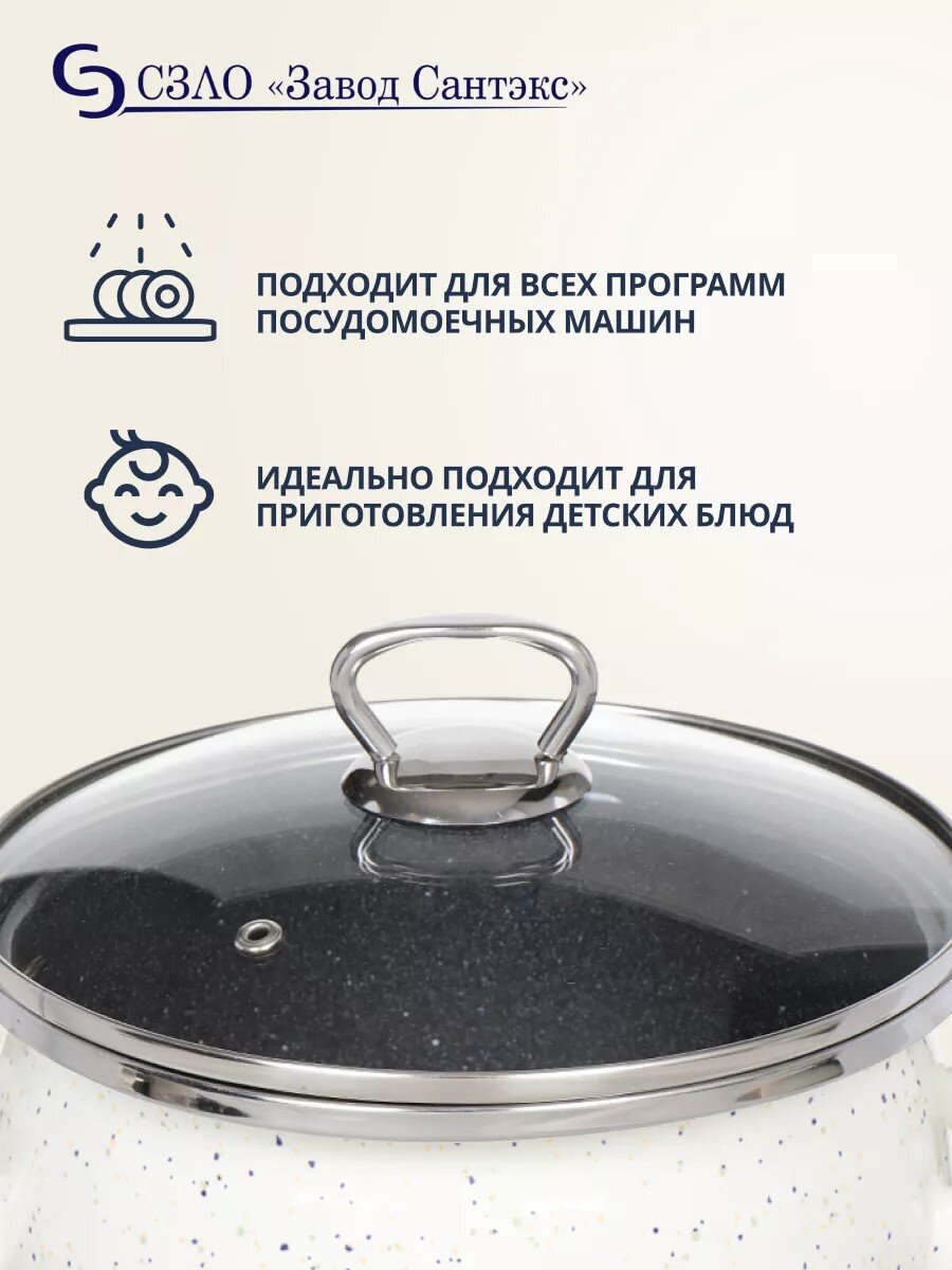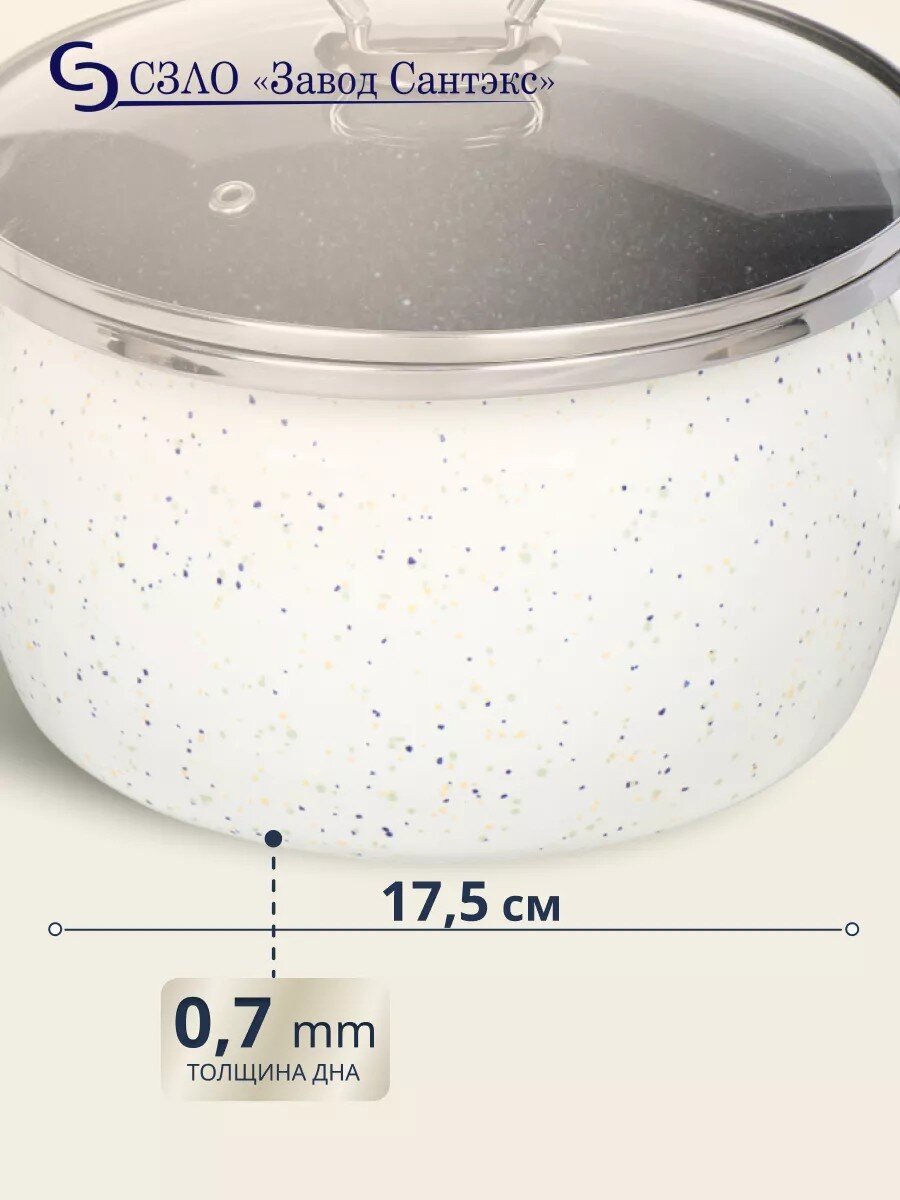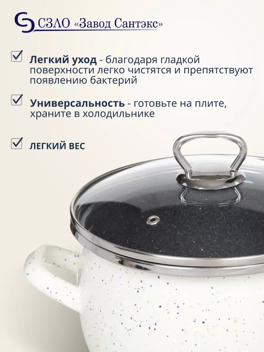 Кастрюля эмалированная Сантэкс 3 л: идеальный выбор для индукционных плит, безопасное стекло, долговечность, стильный гранитный дизайн.