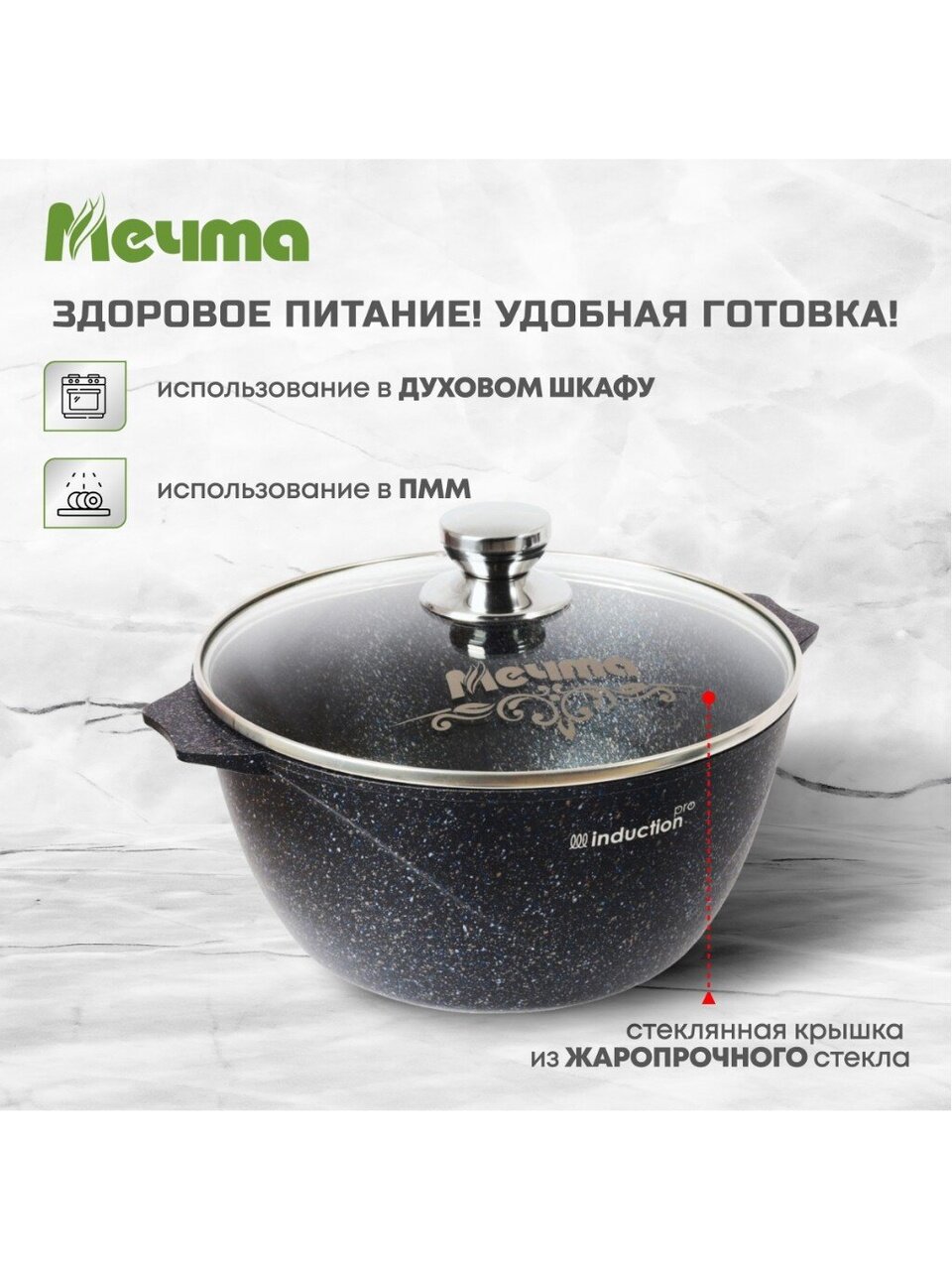 Выбирайте кастрюлю Мечта Гранит star Induction — получите универсальный кухонный инструмент с гарантией производителя 12 месяцев. Оформите заказ онлайн — выгодная цена и быстрая доставка по России.