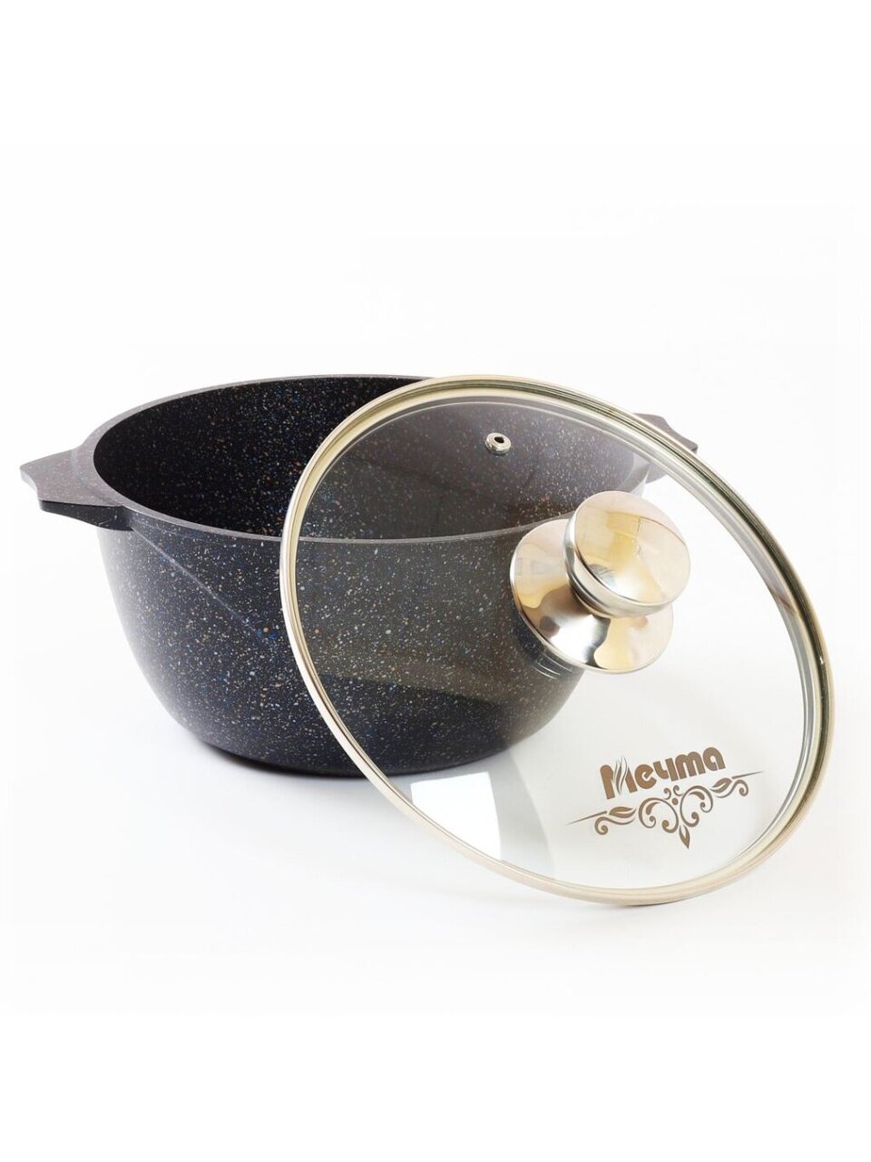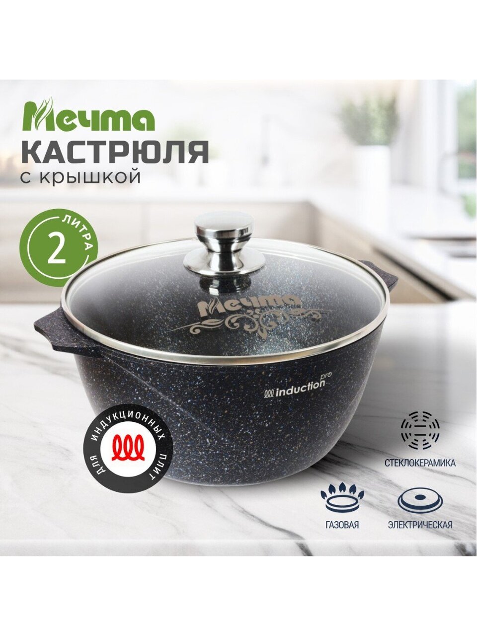Кастрюля алюминиевая 2 л с гранитным антипригарным покрытием и стеклянной крышкой Мечта Гранит star Induction — универсальное решение для плиты и духовки, надёжность на годы.