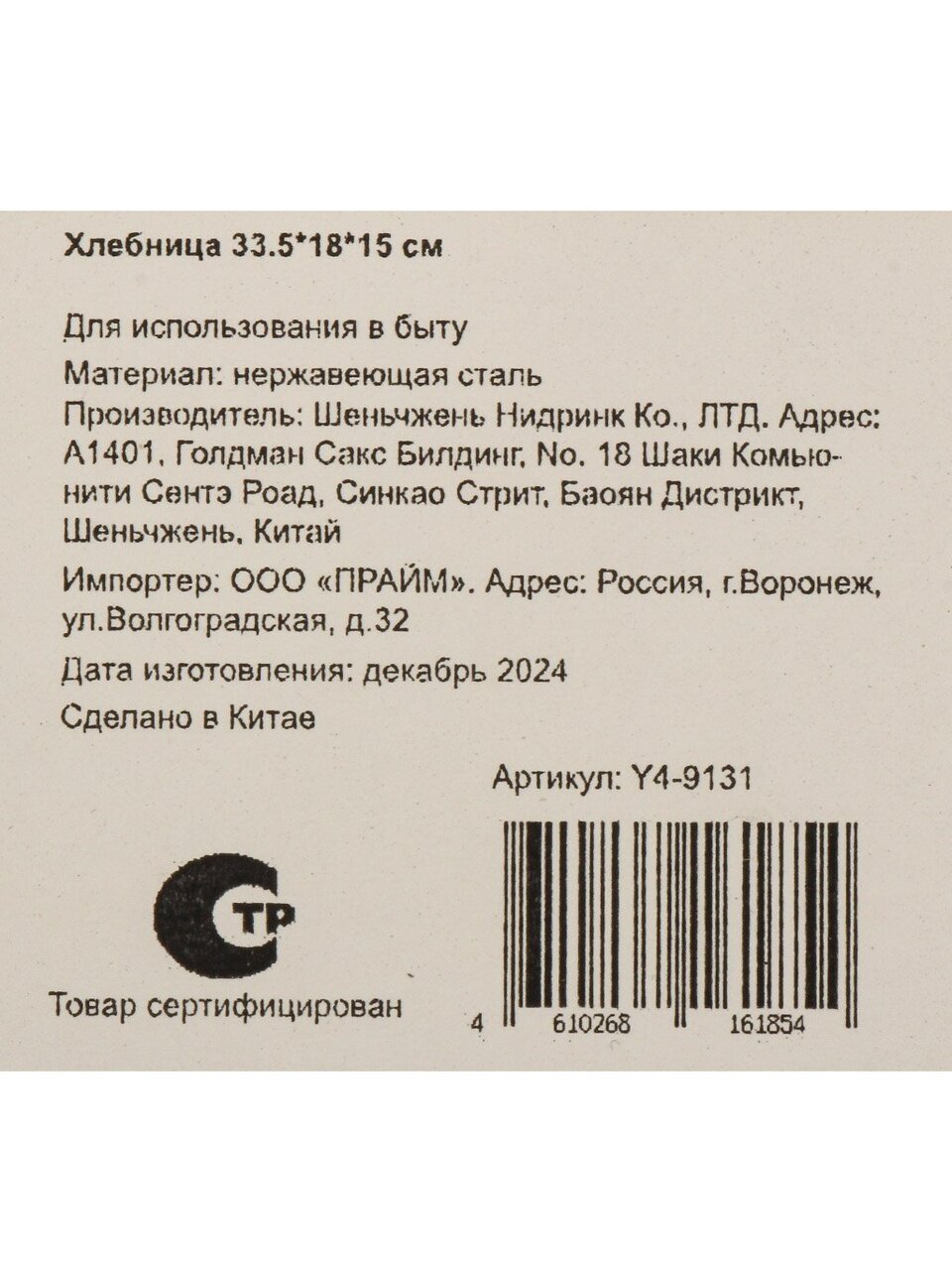 Вы можете приобрести «Хлебница нержавеющая сталь, 33.5х18х15 см, Y4-9131» и другие товары в нашем интернет-магазине в Ярославле по низким ценам и с бесплатным самовывозом.
