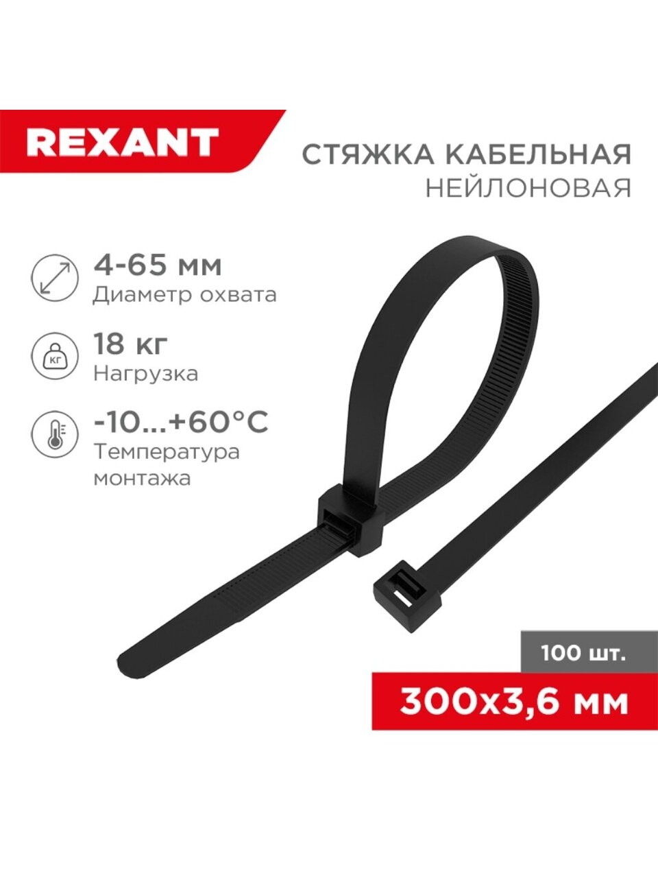 Откройте для себя надежность и долговечность с кабельными стяжками Rexant! Удобное решение для организации проводов и кабелей, которое обеспечит порядок и аккуратность в вашем пространстве. Эти стяжки из нейлона длиной 300 мм и шириной 3.6 мм идеально подходят для различных задач и легко справляются с любыми нагрузками.