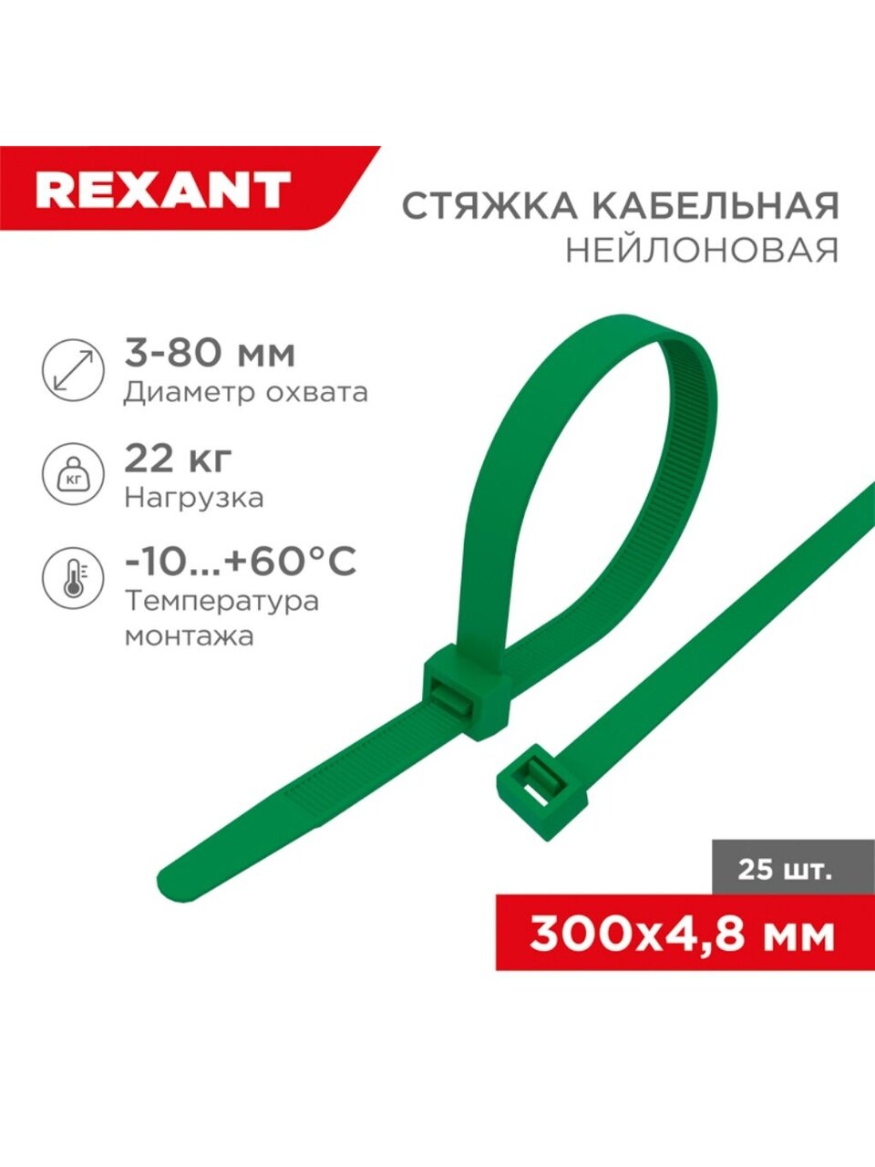 Вы можете приобрести «Хомут стяжной кабельный, 4.8х300 мм, нейлон, 25 шт, зеленый, Rexant, 07-0303-25» и другие товары в нашем интернет-магазине в Орле по низким ценам и с бесплатным самовывозом.