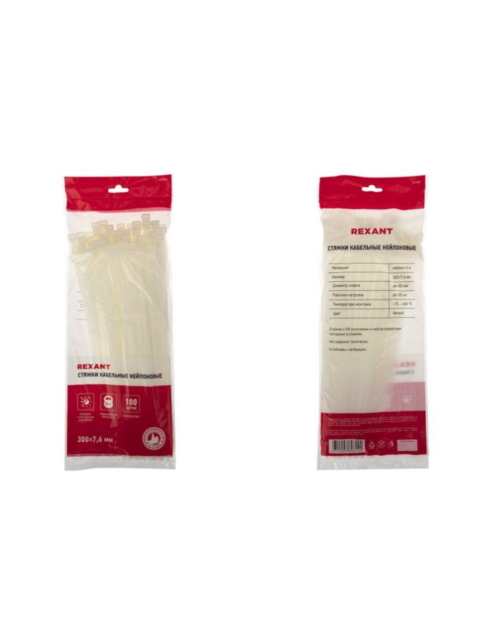 Откройте для себя надежность и удобство с кабельными стяжками Rexant! Эти нейлоновые стяжки размером 7.6х300 мм станут идеальным решением для организации кабелей и проводов. В упаковке 100 штук, что обеспечивает запас для любых нужд.