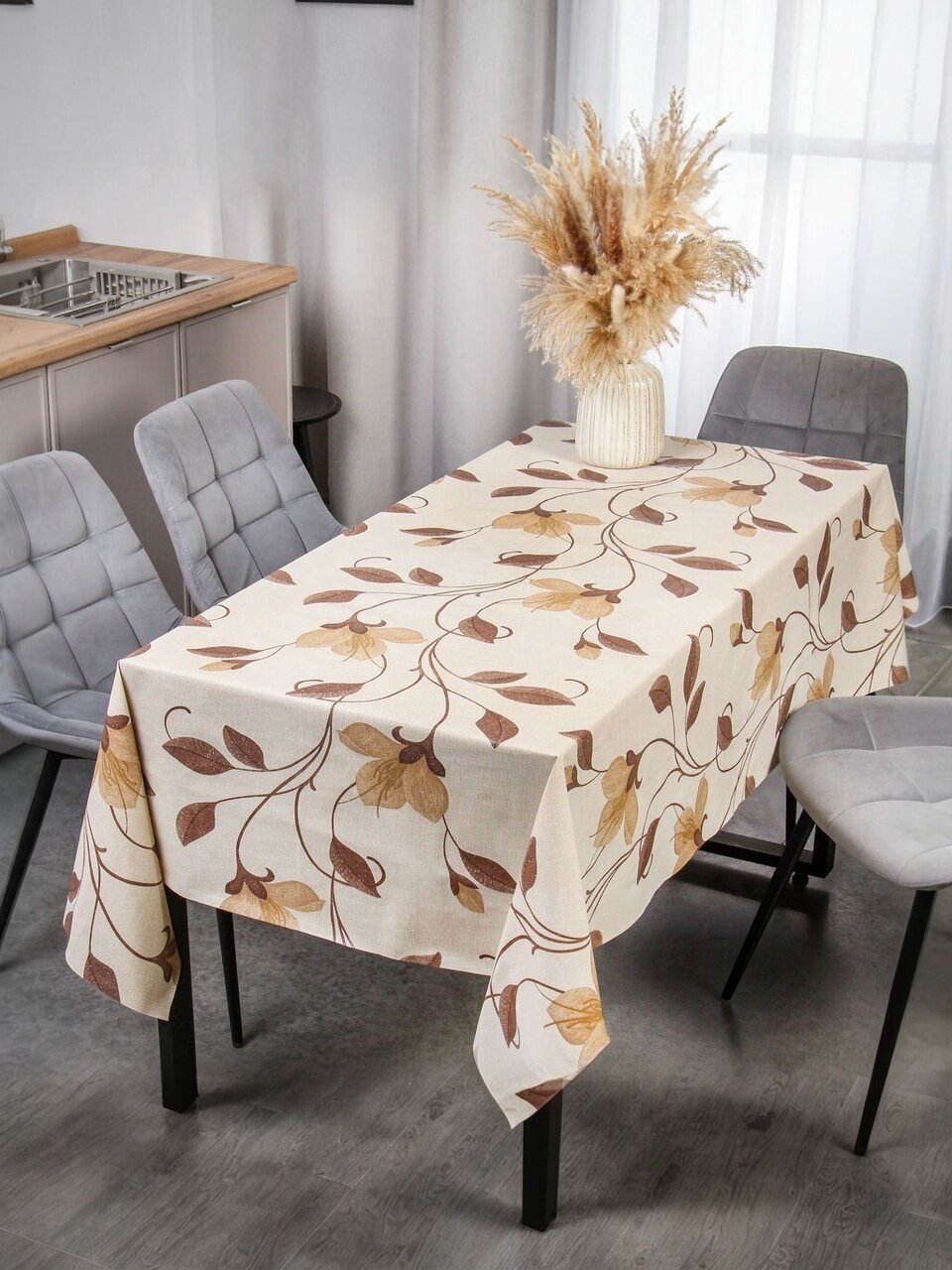 - Простота ухода: материал легко очищается от загрязнений, что делает скатерть идеальной для ежедневного использования.
