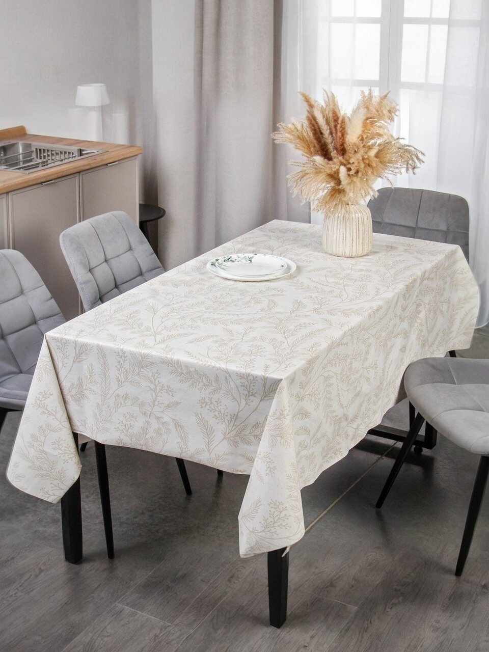 Добавьте в интерьер нотку утонченности с элегантной скатертью Silvano Элегия. Изготовленная из ПВХ на тканевой основе, она сочетает в себе стиль и практичность. Прямоугольная форма и изысканный рисунок веточек на белом фоне делают её идеальным выбором для любого стола.