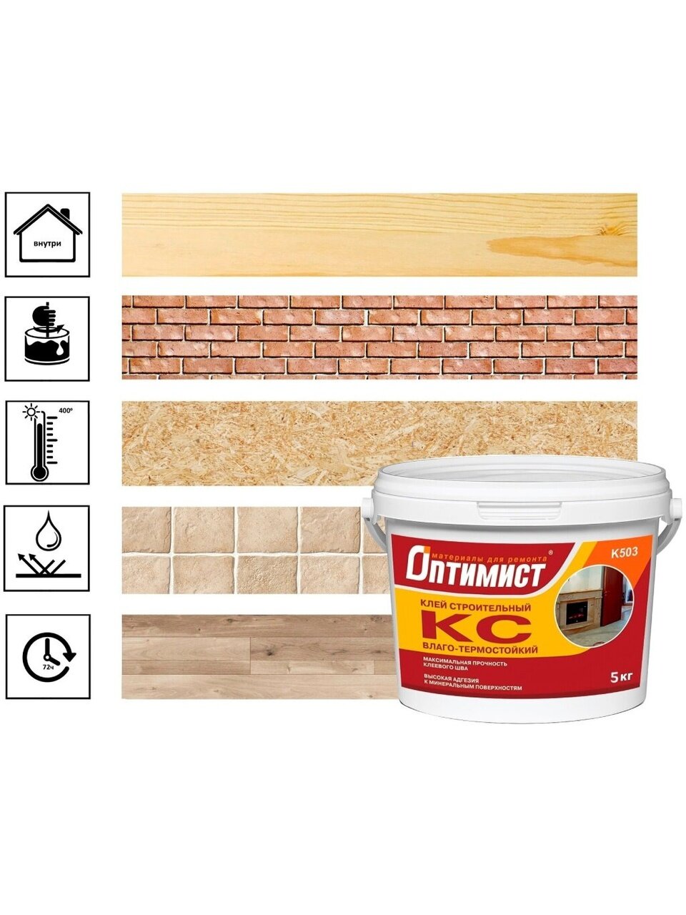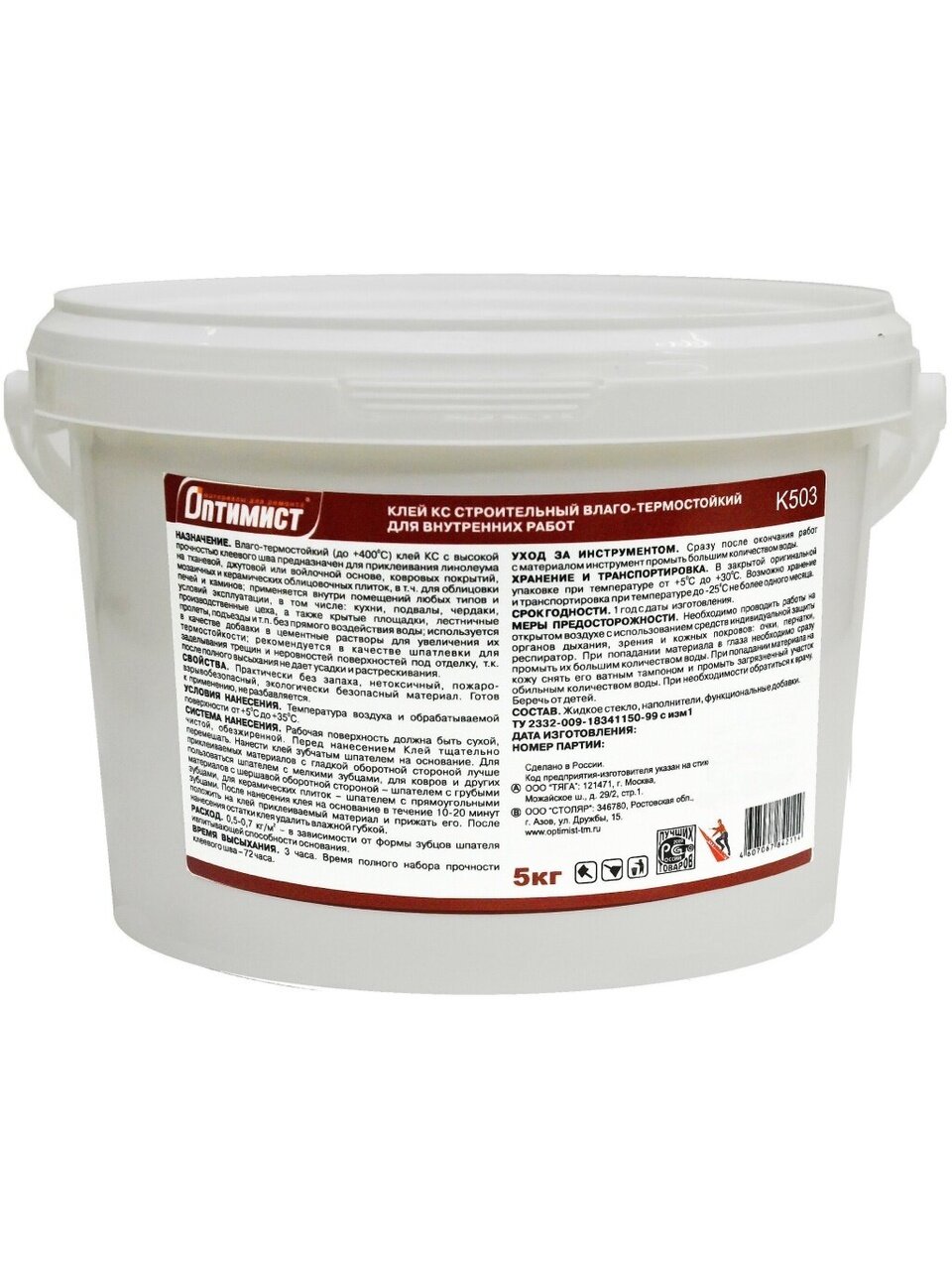 Клей Оптимист, строительный, водостойкий, однокомпонентный, 5 кг, K503, КС